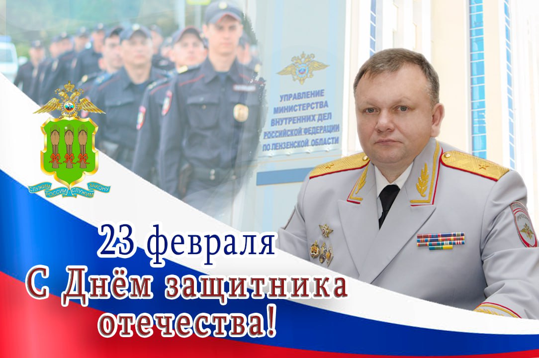 От имени руководства управления Министерства внутренних дел Российской Федерации по Пензенской области сердечно поздравляю вас с Днем защитника Отечества!