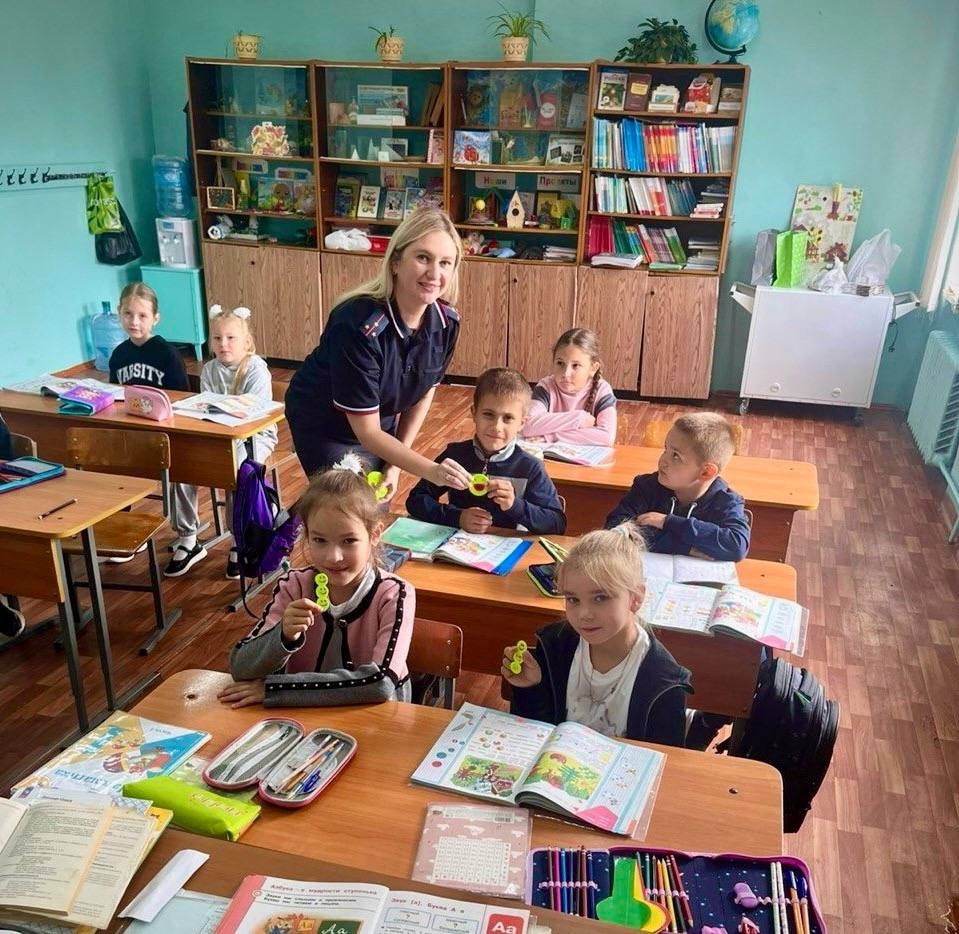 Школьникам напомнили о важности использования световозвращающих элементов на одежде в тёмное время суток. Сотрудник полиции рассказала ребятам, что световозвращающие элементы помогают быть заметнее на дороге, и что в тёмное время суток и непогоду безопасность пешехода зависит от того, насколько он будет заметен на дороге. Особое внимание обращено на правила перехода проезжей части, а также недопустимость использования гаджетов при переходе дороги, а также при движении вблизи неё. Всем ученикам были вручены световозвращающие наклейки, которые помогут сделать их более заметными на дороге в тёмное время суток.