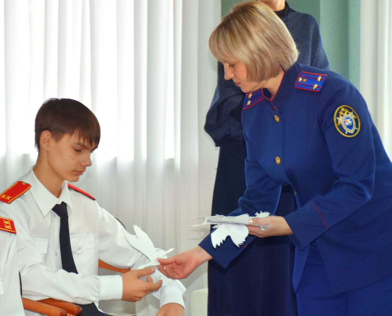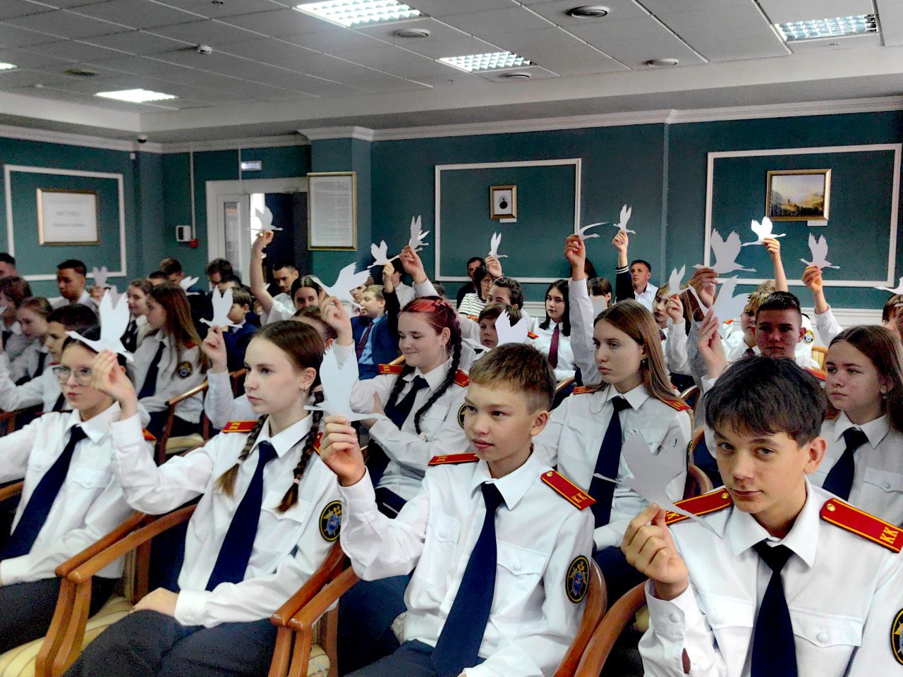 Кадеты вместе с сотрудниками следственного управления изготовили из бумаги белых журавлей, олицетворяющих память о погибших воинах и бессмертие их подвигов.