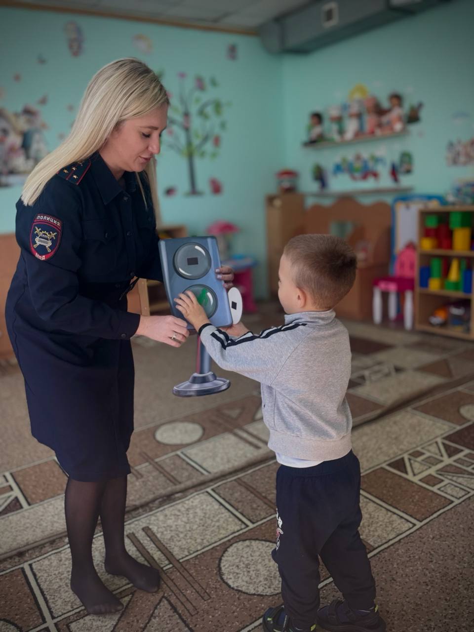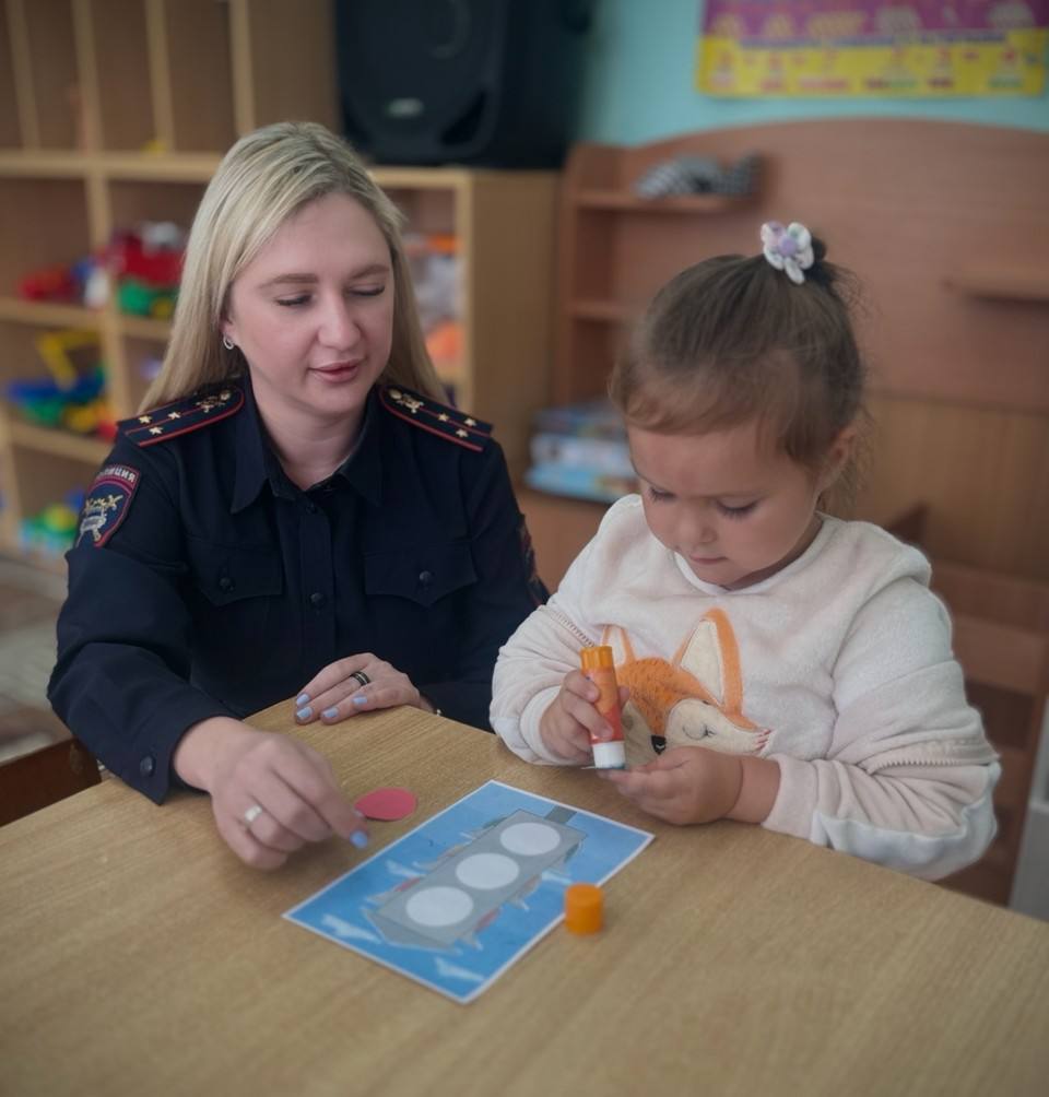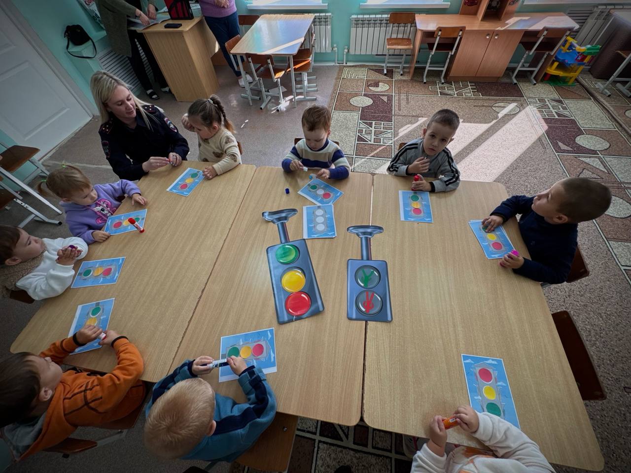 Дорожные полицейские провели познавательное занятие с воспитанниками детского сада на тему: «Светофор: Стой, приготовься, иди»!»с целью прививания и формирования навыков безопасного поведения на дороге. Ребята с удовольствием участвовали в игре «Светофор»демонстрируя навыки безопасного поведения, при пересечении проезжей части, попрактиковались на бумаге в виде поделки «Светофор», закрепляли полученные знания в применении правил дорожного движения и разобрали вместе сотрудниками Госавтоинспекции опасные ситуации и дорожные ловушки. А так же сотрудники полиции напомнили дошколятам о важности использования световозвращающих элементов, которые помогают пешеходу стать заметнее для водителей. В завершении встречи инспектора пояснили детям, что залог их безопасности на дороге - внимание, ответственность и неукоснительное соблюдение ПДД!