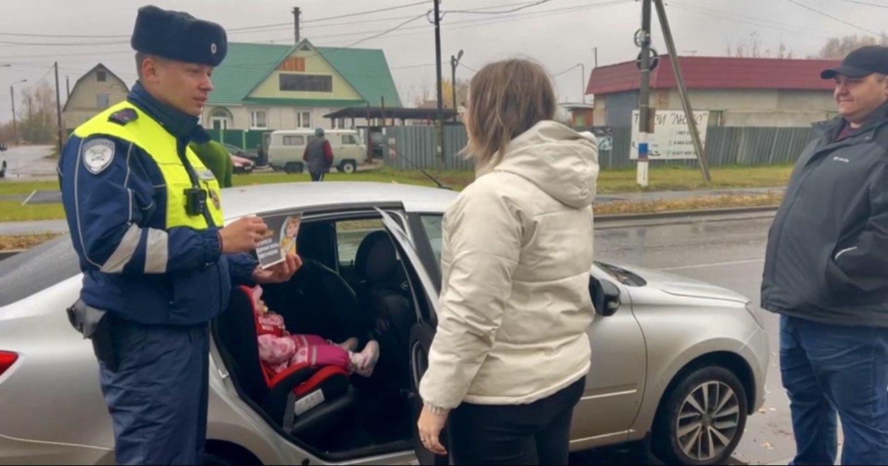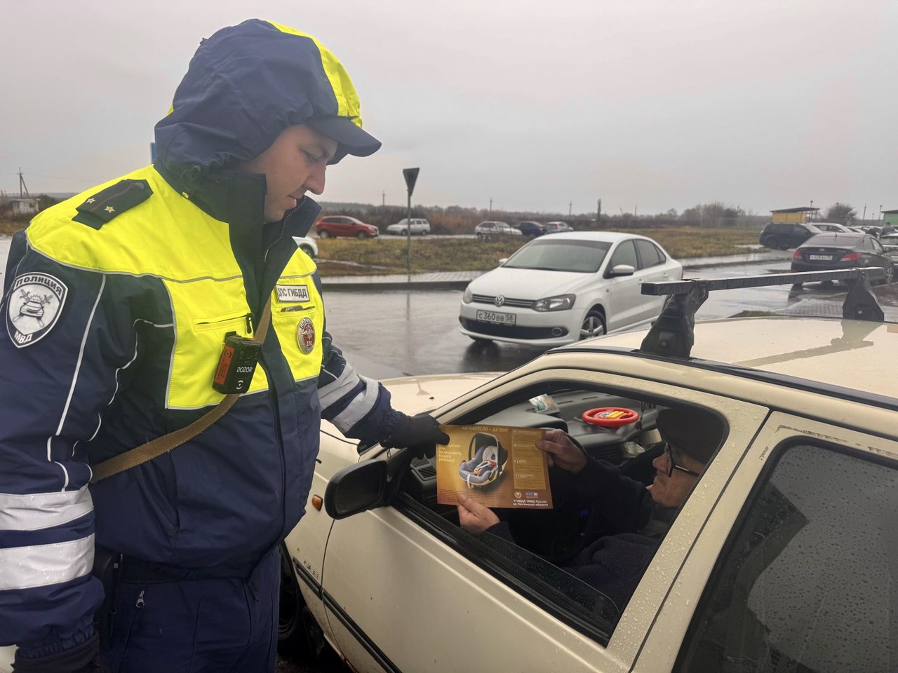 Автоинспекторы проводят профилактические беседы с родителями уделяя особое внимание на соблюдение правил перевозки детей, вручая информационные брошюры, а маленьким пассажирам, ставшим участниками рейда — световозвращающие аксессуары