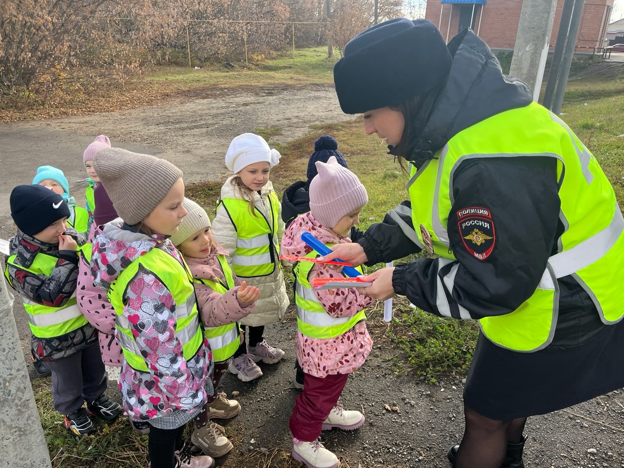 Практическое занятие прошло непосредственно на пешеходном переходе, где юные участники под руководством инспектора отработали безопасные маршруты, которыми они пользуются каждый день. В ходе экскурсии дети освоили базовые навыки безопасного перехода дороги: научились правильно оценивать дорожную обстановку, внимательно смотреть по сторонам перед выходом на проезжую часть.