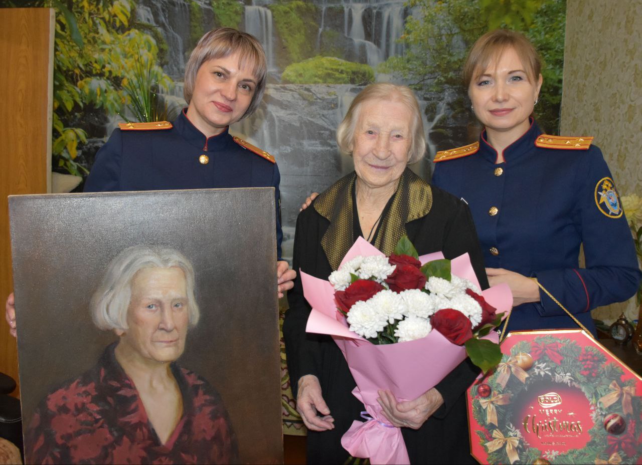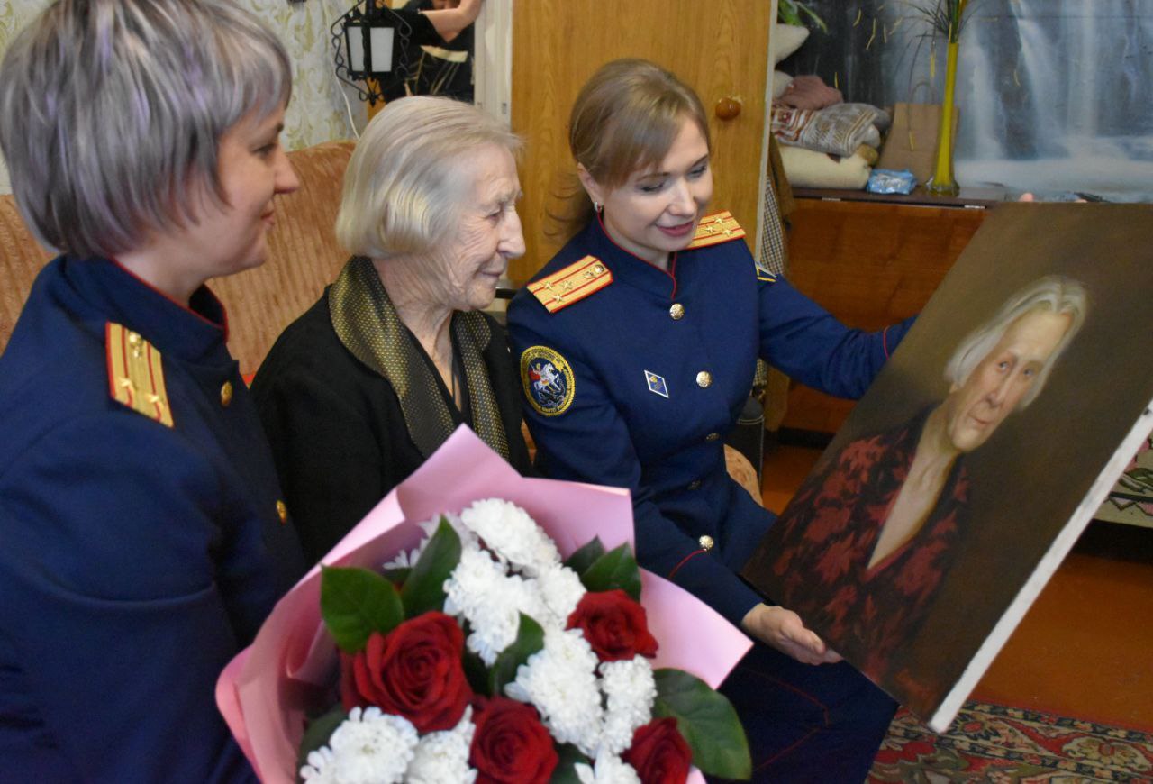 Сотрудники следственного управления поздравили Анну Ивановну с Днем рождения и наступающим Новым годом и передали в качестве подарка ее портрет, написанный по инициативе следственного управления студенткой 4 курса Пензенского художественного училища имени К.А. Савицкого Викторией Сизинцевой.