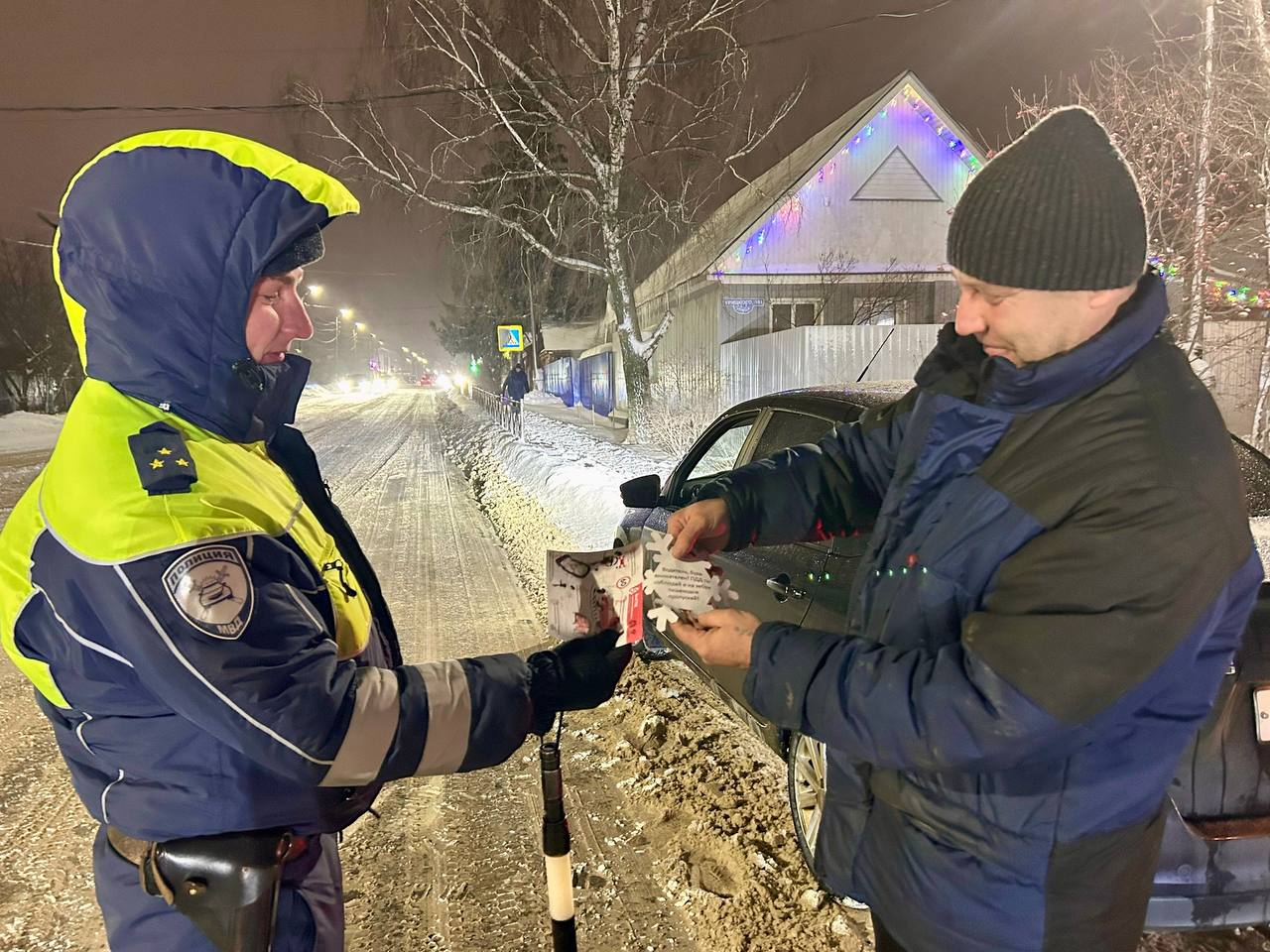 Сотрудники Госавтоинспекции Нижнеломовского района провели профилактическое мероприятие "Снежинки безопасности" для пешеходов и водителей