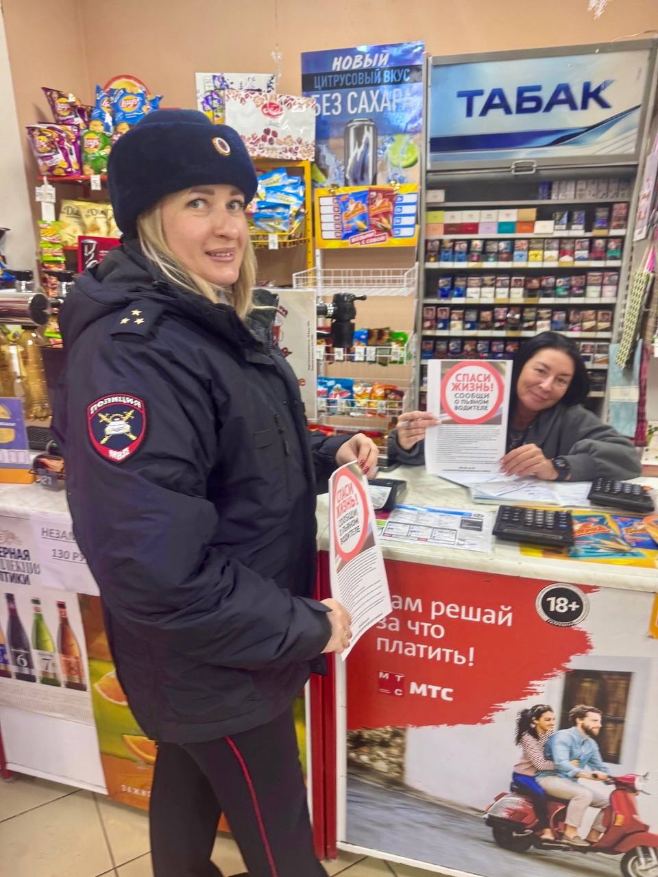 В рамках акции сотрудники Госавтоинспекции в местах массового скопления граждан беседовали о важности активной гражданской позиции в профилактике ДТП по вине нетрезвых водителей. Дорожные полицейские распространили в торговых точках тематические листовки "Сообщи о нетрезвом водителе" с информацией о том, куда можно обратиться, если человек обладает информацией о факте управления транспортным средством нетрезвым водителем, либо поведение водителя вызывает сомнение в его адекватности. Участникам акции разъяснили, что это вынужденная, но эффективная мера, которая может сохранить чью-то жизнь и здоровье. Прекратив поездку нетрезвого водителя, каждый гражданин сможет внести посильный вклад в дело предупреждения дорожно-транспортных происшествий и сделать дороги безопаснее