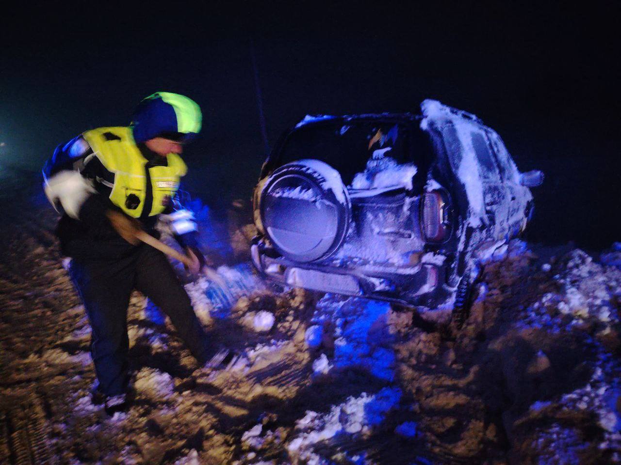 Инспекторы незамедлительно выехали к заявителю на помощь. Прибыв в указанное место, автоинспекторы выяснили, что водитель автомобиля «Нива» не справился с управлением, совершил съезд с дороги и увяз в снегу, самостоятельно вызволить машину ему не удалосьДорожные полицейские пригласили автомобилиста отогреться в патрульном автомобиле.