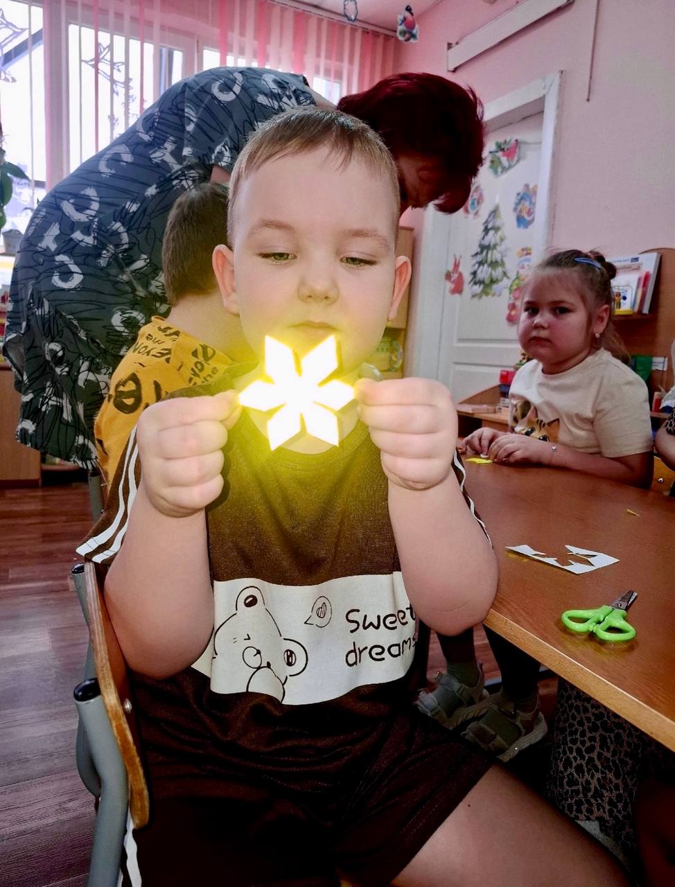Дорожные полицейские объяснили детям, что такое светоотражающий элемент, из чего он состоит и для чего он нужен, а затем предложили ребятам сделать светоотражающие элементы своими руками.Поняв принцип работы таких нужных элементов, воспитанники детского сада, вооружившись необходимыми подручными инструментами – ножницами и трафаретамами, с интересом приступили к созданию «светлячков».