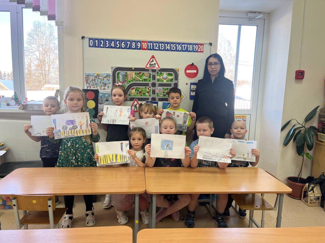 Дети совместно с дорожными полицейскими повторили основные Правила дорожного движения для пешеходов, вспомнили, что обозначают дорожные знаки, и разобрали самые частые ситуации, которые могут встретиться пешеходам в зимний период, а также вспомнили для чего нужны световозвращающие элементы в темное время суток. Автоинспекторы рассказали детям о важности и необходимости использования детского удерживающего устройства при поездках в автомобиле, разъяснили насколько важно не просто находиться в автокресле, но и обязательно пристегиваться ремнями безопасности. А в завершении встречи дети рисовали рисунки по на тему Правил дорожного движения!