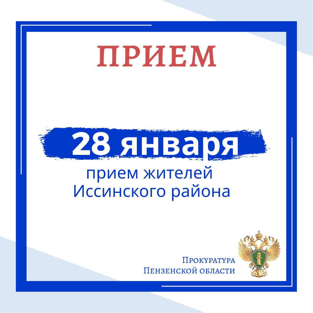 Место и время: прокуратура Иссинского района (р. п. Исса, ул. Центральная, 2) с 11.30.