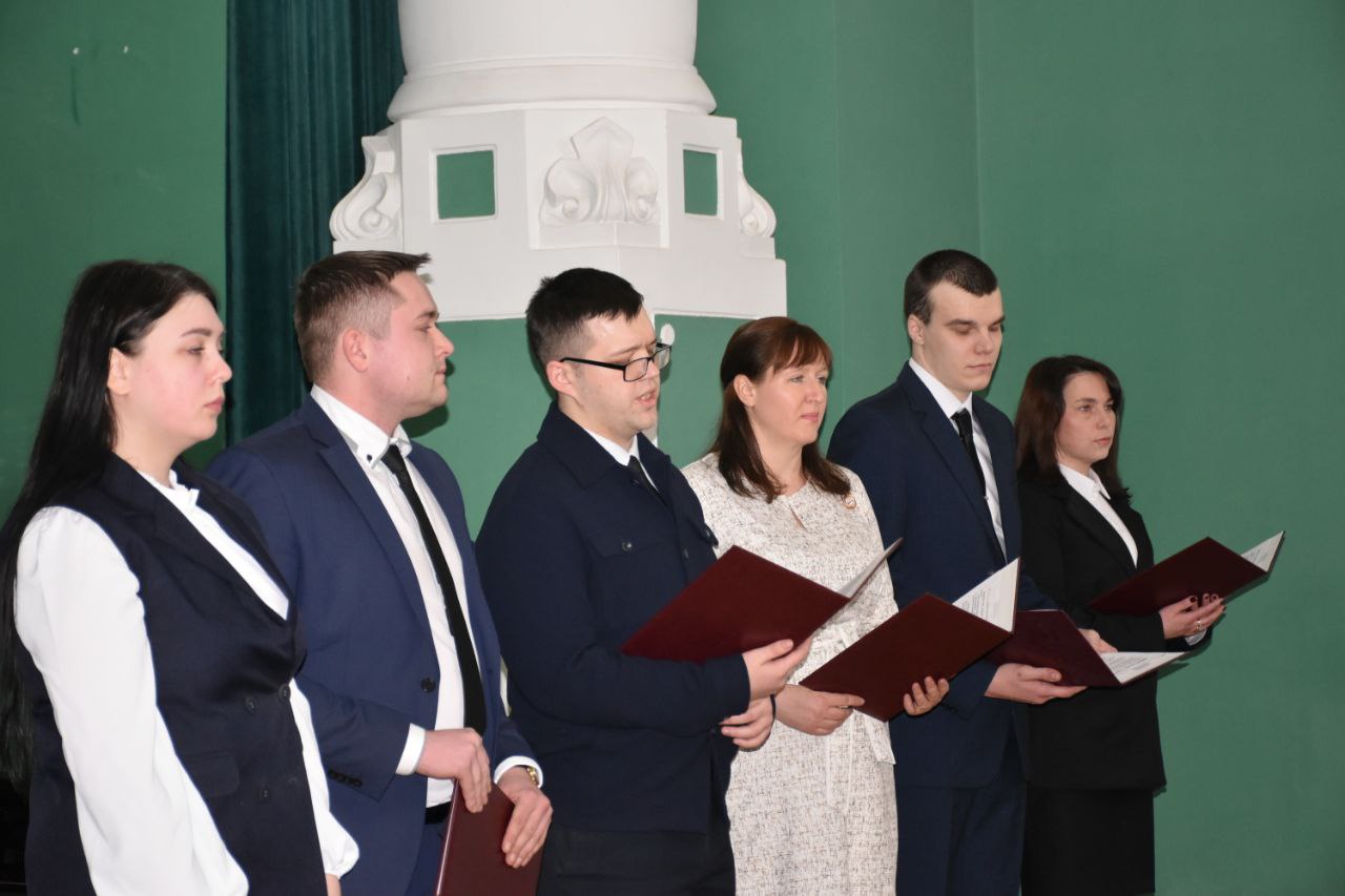 В торжественной обстановке недавно поступившие на службу в следственное управление следователи приняли Присягу сотрудника СК России, им вручен Кодекс чести русского офицера. Для кадет участие в торжественной Присяге молодых следователей пример выбора достойной профессии, Служения Отечеству, защите прав и законных интересов граждан, общества и государства.