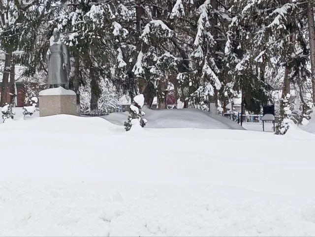 В Вадинске площадка Мемориала, посвящённого Великой Отечественной войне, монументы, стелы и барельефы героев еще несколько дней назад были полностью занесены снегом.