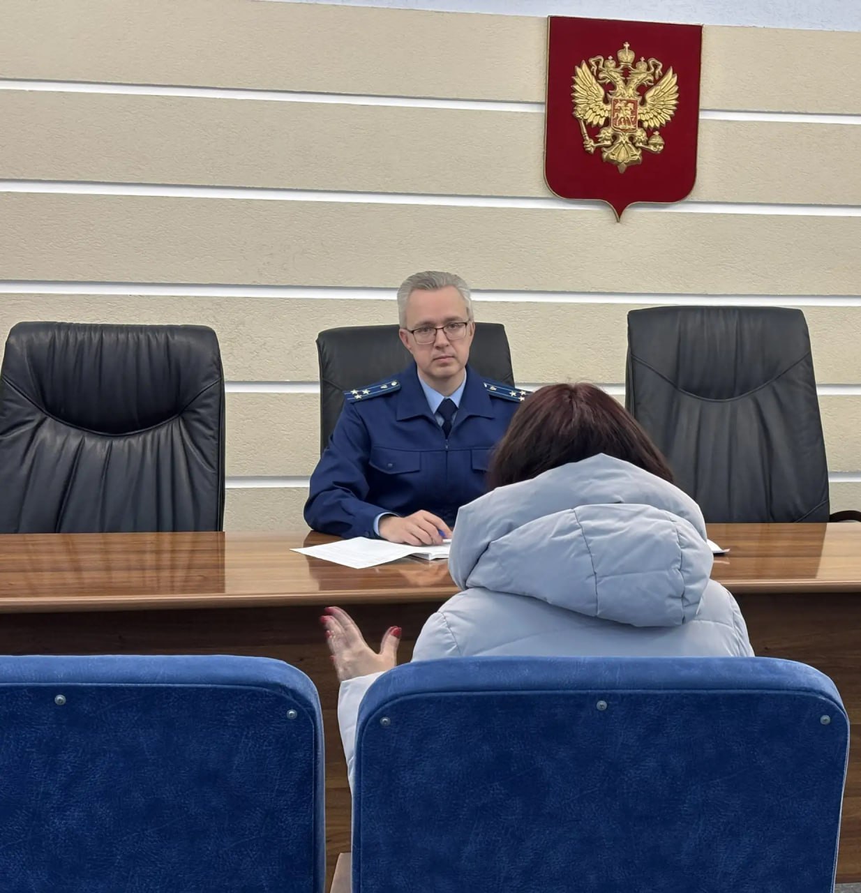 Начальник управления по надзору за исполнением федерального законодательства прокуратуры области Олег Самохин провел в прокуратуре области тематический личный прием участников специальной военной операции и членов их семей по вопросам защиты их прав.
