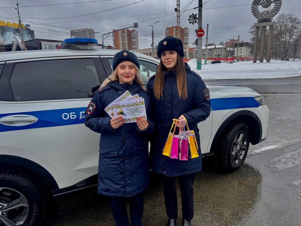 В преддверииМеждународного женского дня сотрудники пензенской Госавтоинспекции провели праздничную акцию «Женский патруль», чтобы подарить водителямженщинам весеннее настроение и напомнить о безопасности на дорогах. Инспекторы останавливали авто под управлением женщин, но вместо привычной проверки документов поздравляли их с приближающимся праздником и вручали открытки и подарки. Полицейские желалиженщинам ровных и безопасных дорог, семейного благополучия, радости и весеннего настроения. Многие автоледи с улыбкой принимали подарки и благодарили за приятный сюрприз