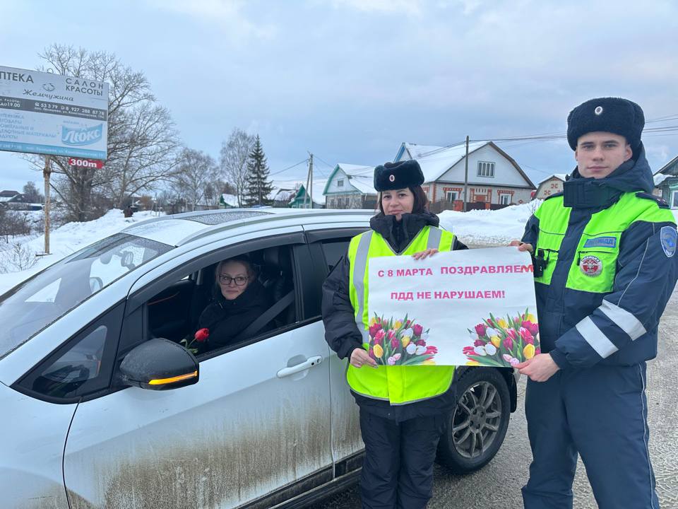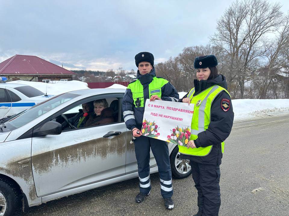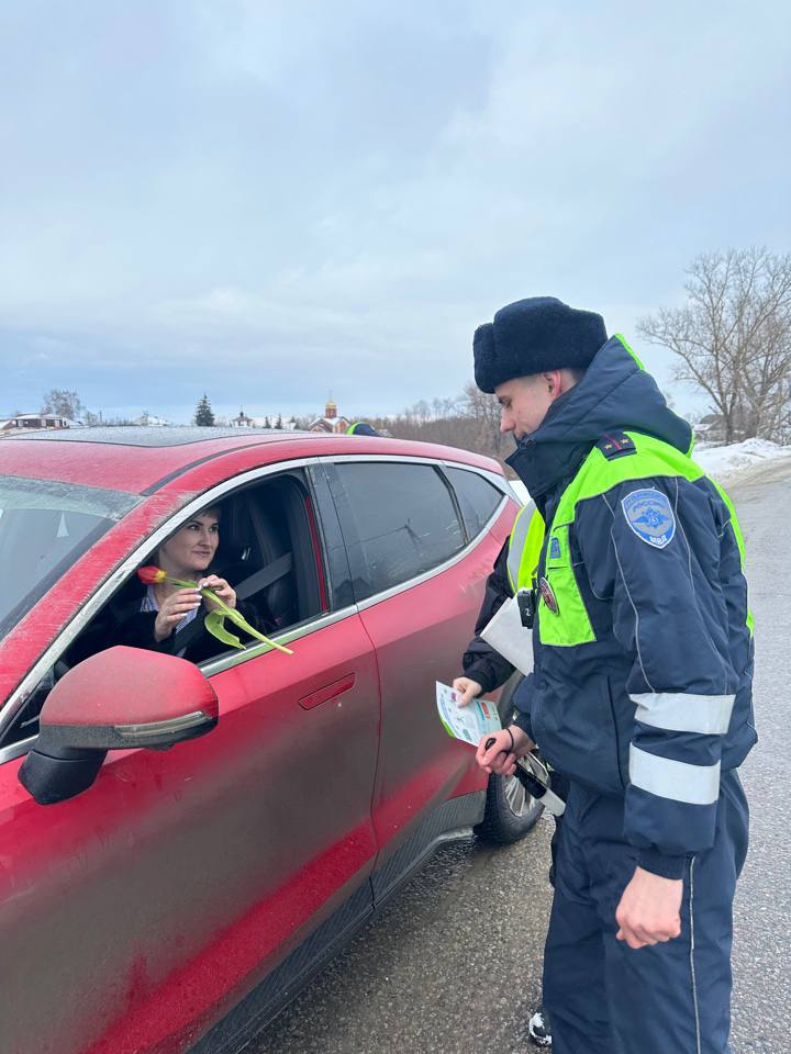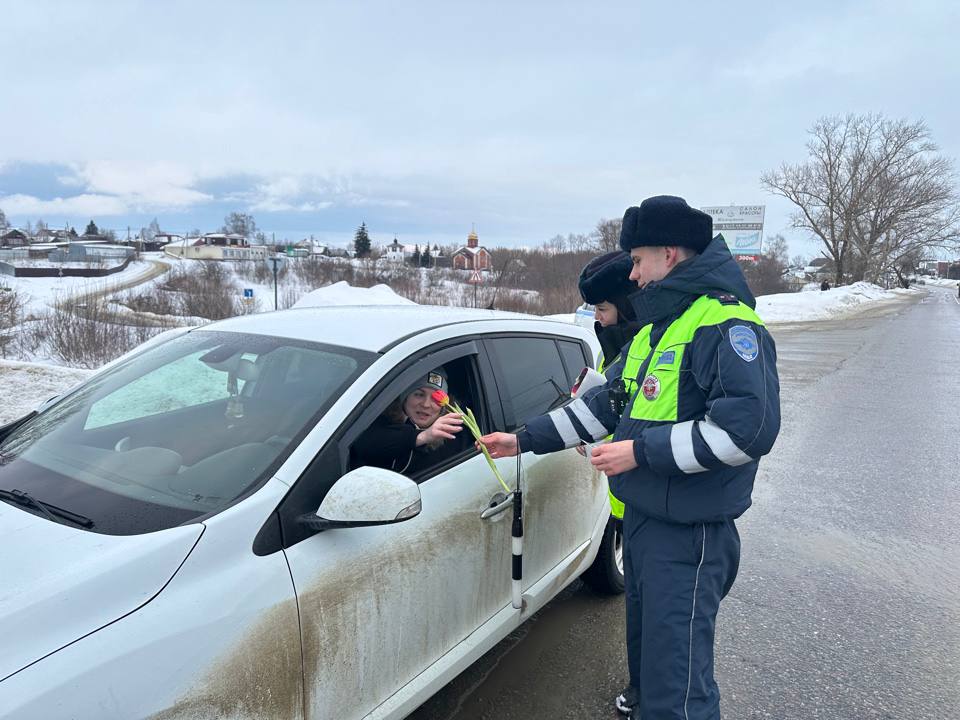 Жезл, тюльпаны и поздравления ! Сотрудники Госавтоинспекции Кузнецкого района поздравили автолюбительниц с весенним праздником !