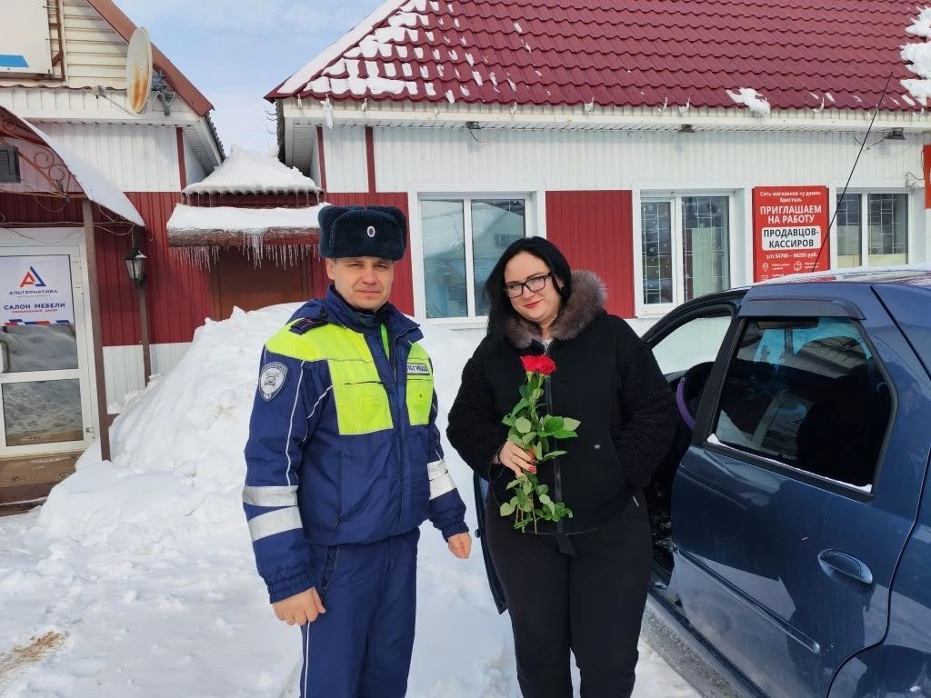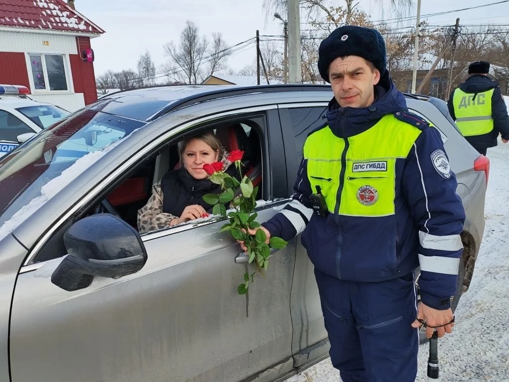 В Международный женский день сотрудники Госавтоинспекции Наровчатского района поздравили прекрасных дам с праздником.