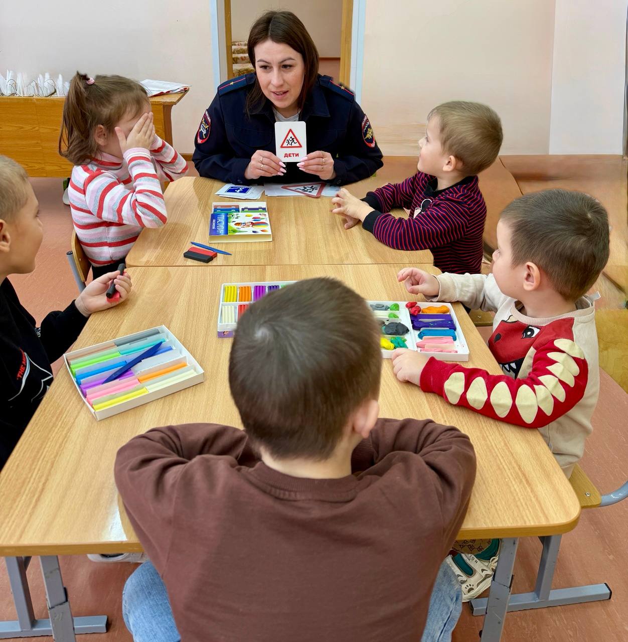 В филиале детского сада села Булычево состоялся мастер-класс по изготовлению дорожных знаков в миниатюре методом пластилинографии. Инспекторы напомнили детям о правилах безопасного поведения зимой на дорогах и придомовых территориях, обсудив возможные опасности, возникающие при участии в дорожном движении. Затем началась творческая часть занятия. Детям были представлены основные виды дорожных знаков, их значение и необходимость соблюдать требования знаков при передвижении. Для закрепления материала инспекторы предложили создать собственные объёмные рисунки дорожных знаков из пластилина, используя заранее подготовленные макеты.