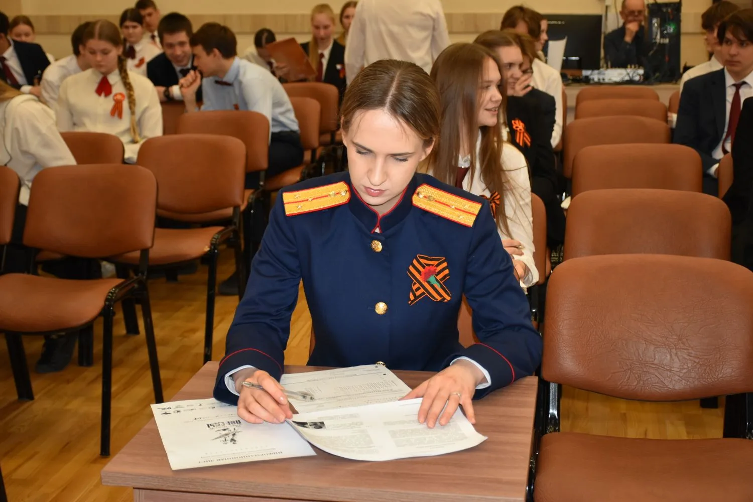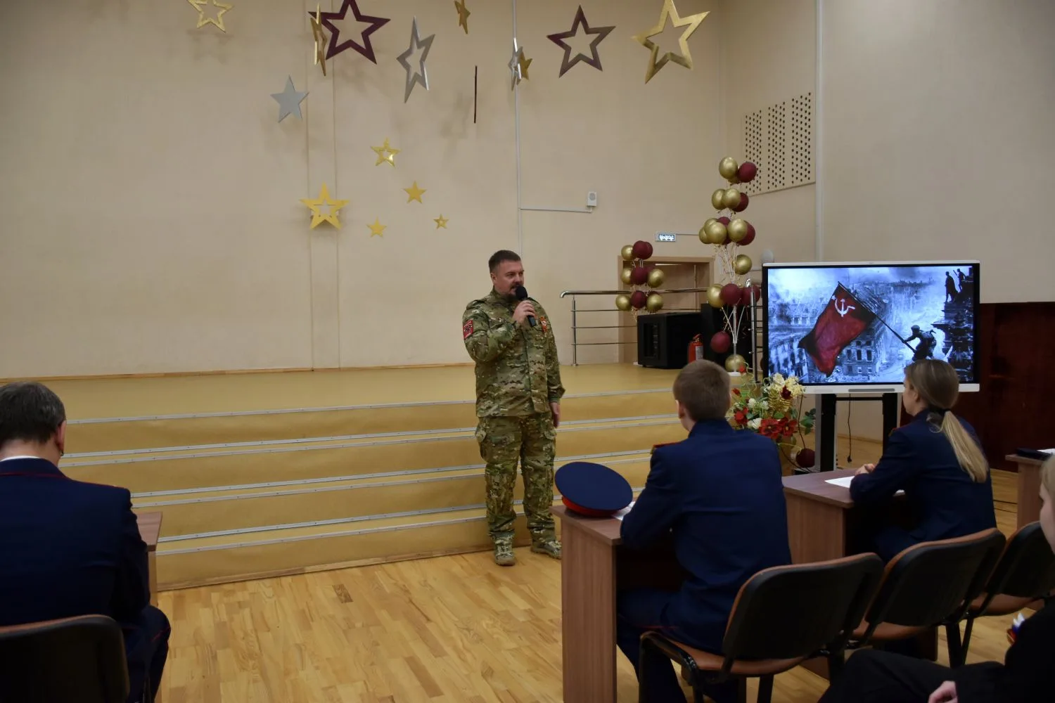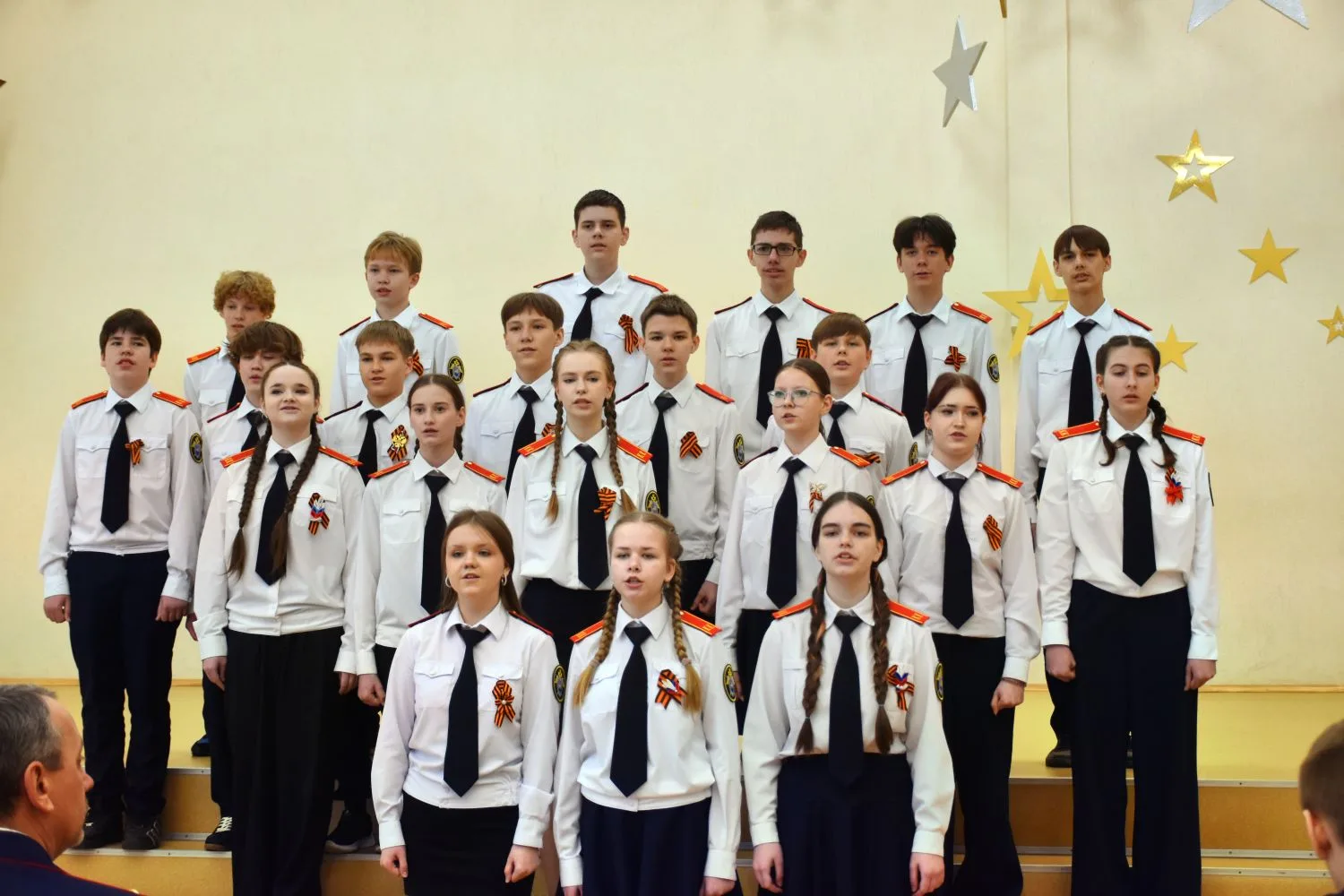 Перед началом мероприятия кадеты и учащиеся других классов школы выступили с патриотическими музыкальными номерами.