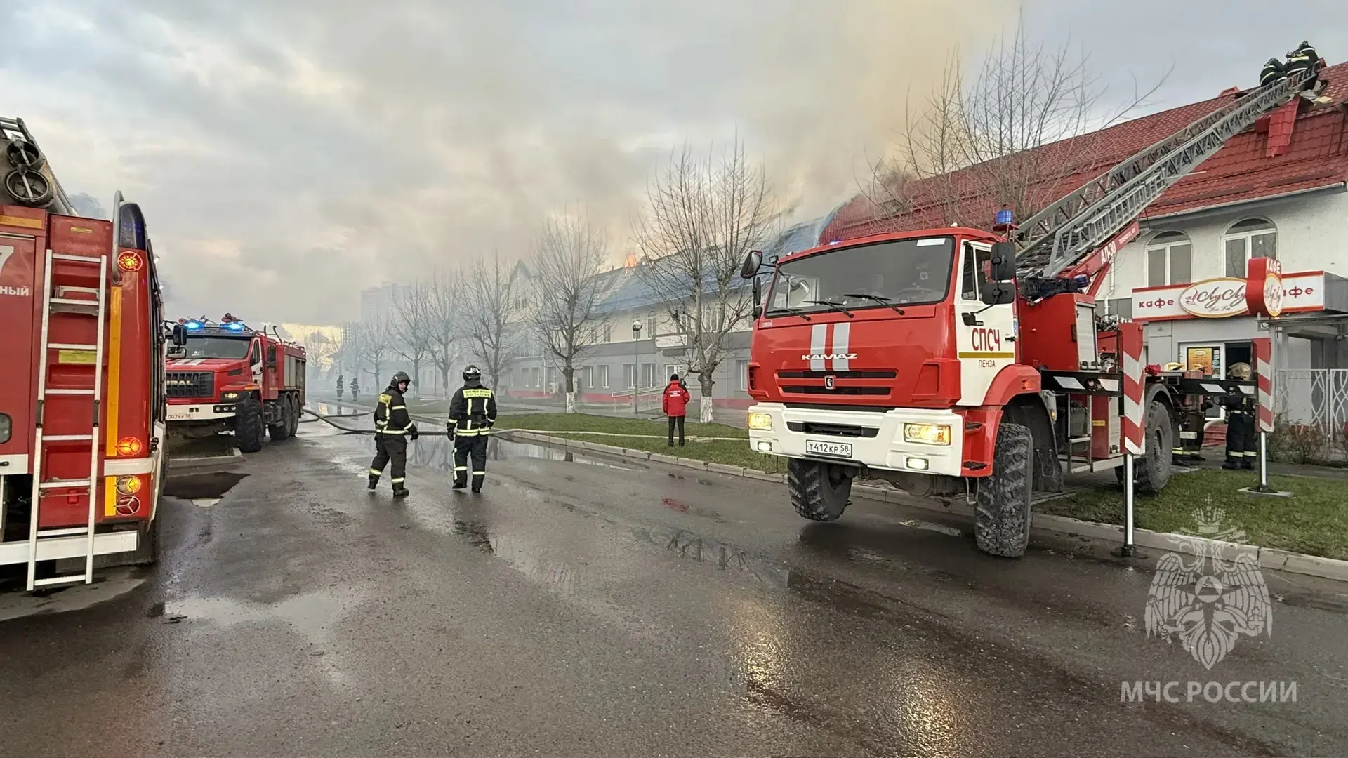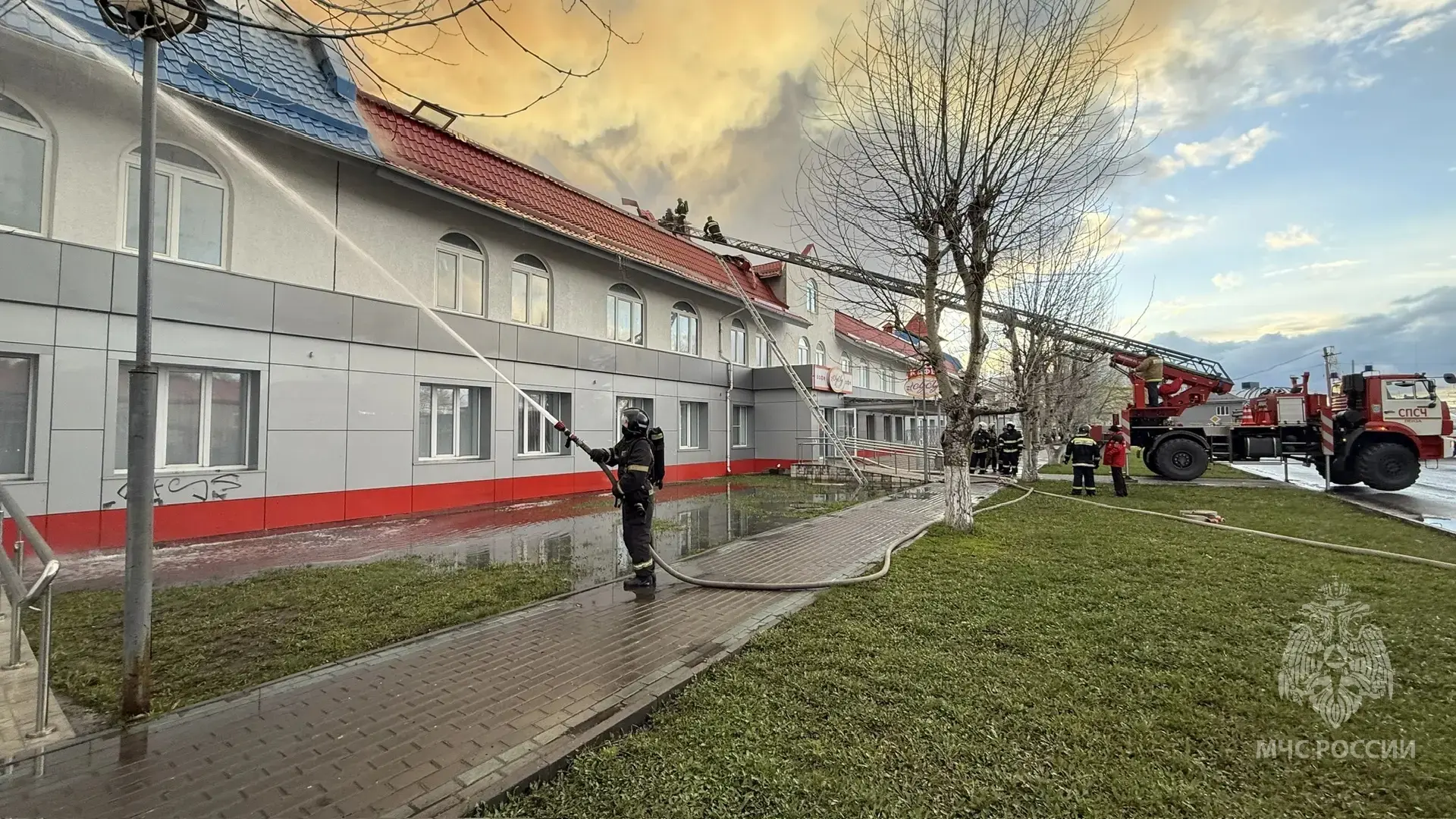 Пожарным удалось не допустить распространение огня на жилую часть здания, площадь пожара составляет около 800 квадратных метров.