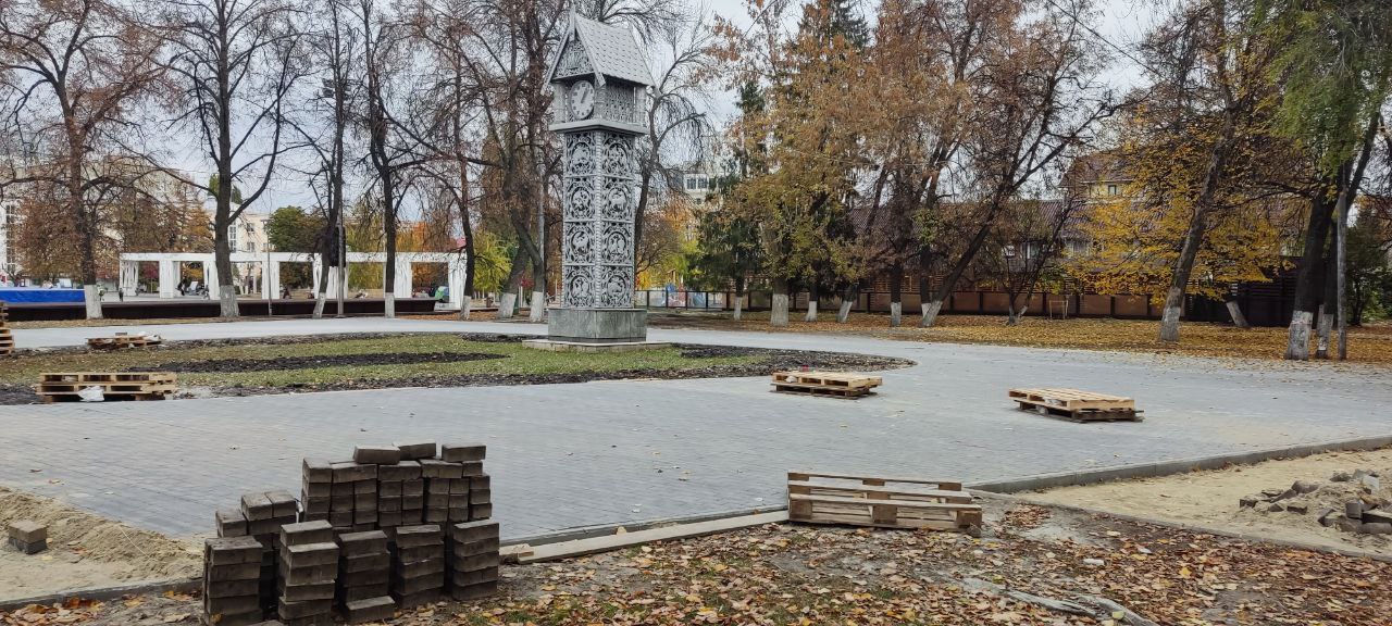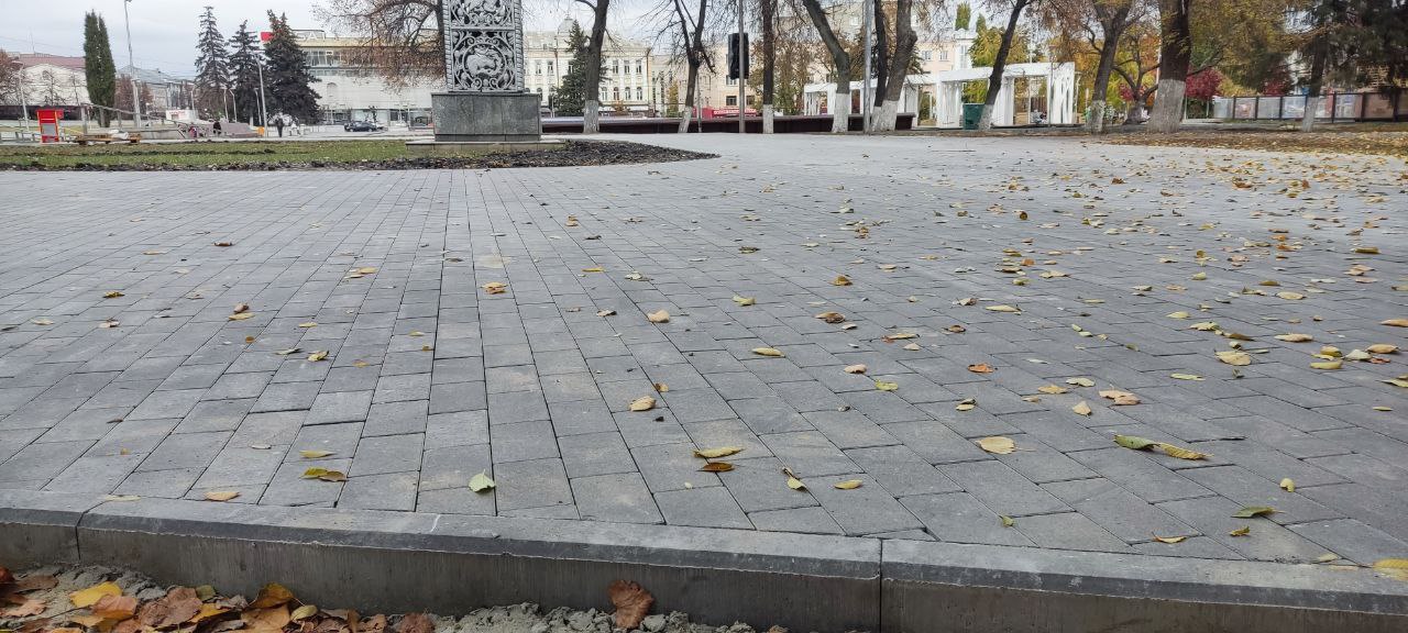 В сквере «Кукушка» начали укладывать новую бетонную плитку «кирпичик». Демонтированные старые бордюры и покрытие уже вывезли.