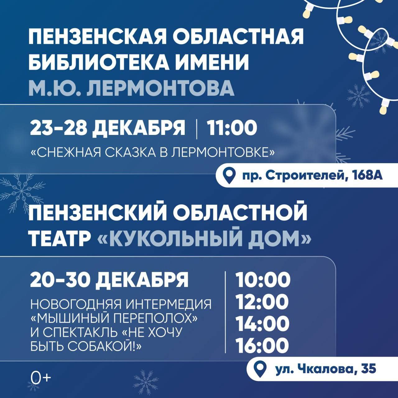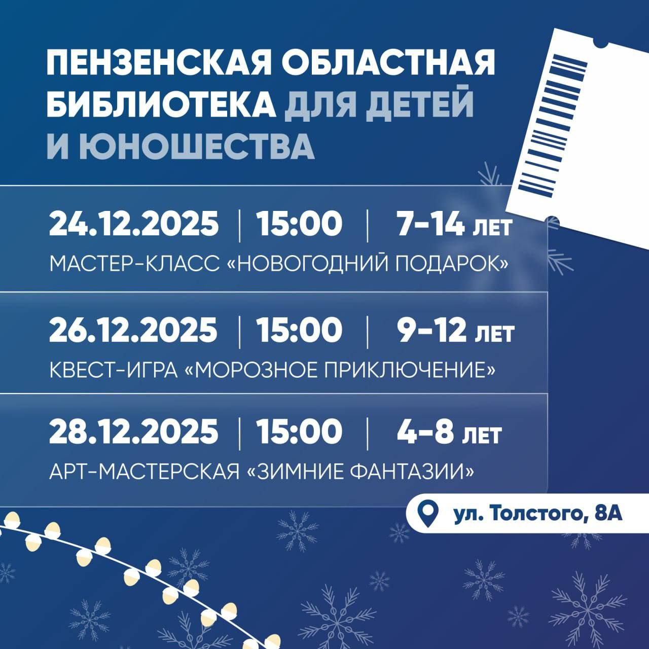 До середины января для детей и взрослых пройдут яркие мероприятия: выставки, спектакли, мастер-классы и квесты.