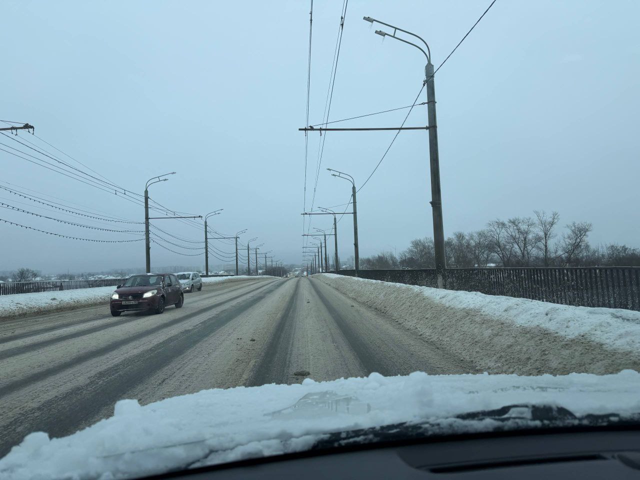 «Валы снега никто не убирает! За сегодня насыпало еще больше, и правая полоса стала еще уже», - отметила она.