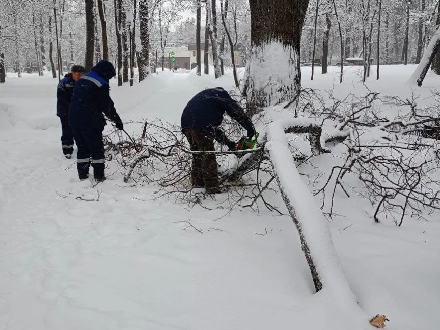 На Олимпийской аллее под тяжестью снега рухнули 2 дерева