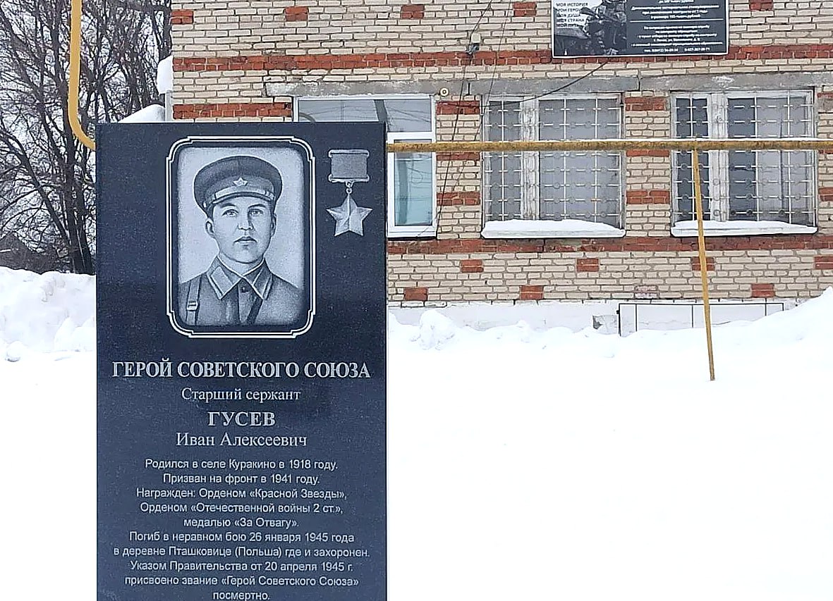 Моя гордость – уроженец Сердобского района, села Куракино Иван Алексеевич Гусев. Отважный артиллерист участвовал в обороне Москвы, боевых действиях на Центральном, первом Белорусском и Украинском фронтах. Награжден орденами Красной Звезды и Отечественной войны II степени, медалью «За Отвагу». В январе 1945 года в Польше его батарею внезапно атаковал враг. Командир Иван Гусев первым бросился в бой и уничтожил несколько десятков фашистов. Ему было посмертно присвоено звание Героя Советского Союза, а в родном селе установлен памятник.