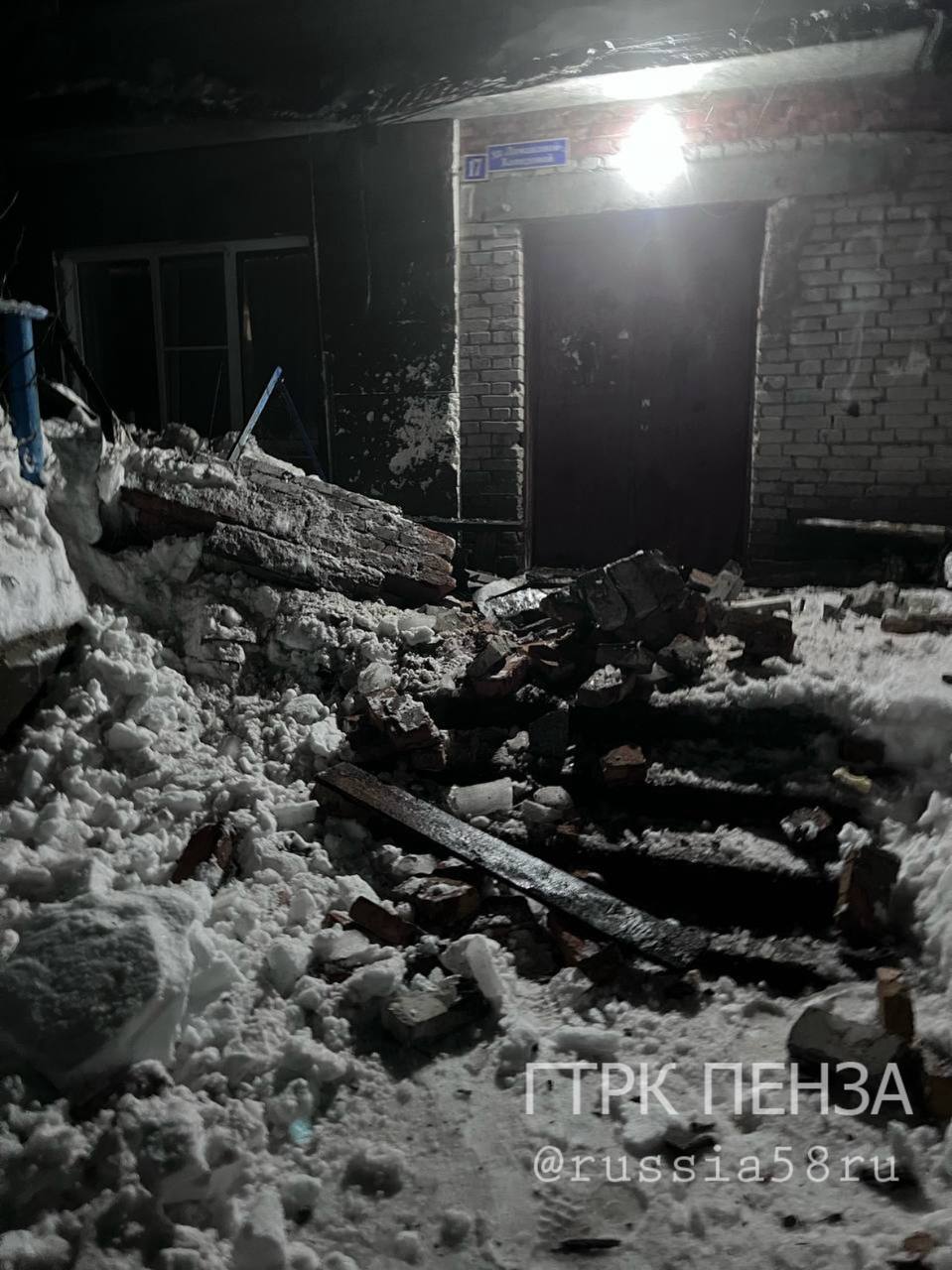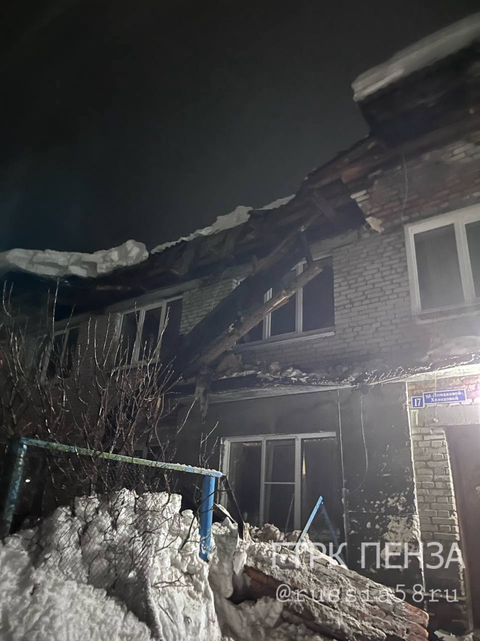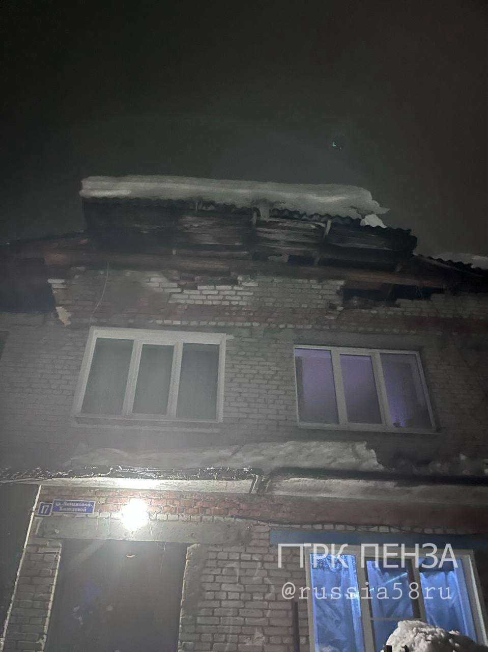 Инцидент произошел вчера вечером на улице Ломаковой-Холодовой, 17. Часть крыши рухнула на крыльцо.