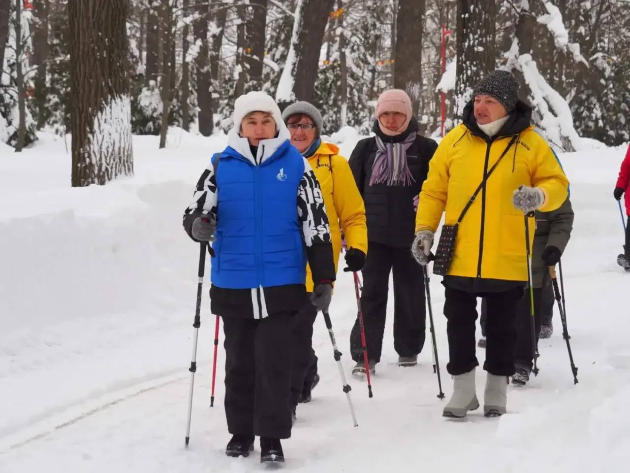 Порядка 70 граждан «серебряного» возраста — активные приверженцы занятий спортом на свежем воздухе, несмотря на морозную погоду, пришли показать мастер-класс по скандинавской ходьбе и суставной гимнастике прохожим и молодому поколению.