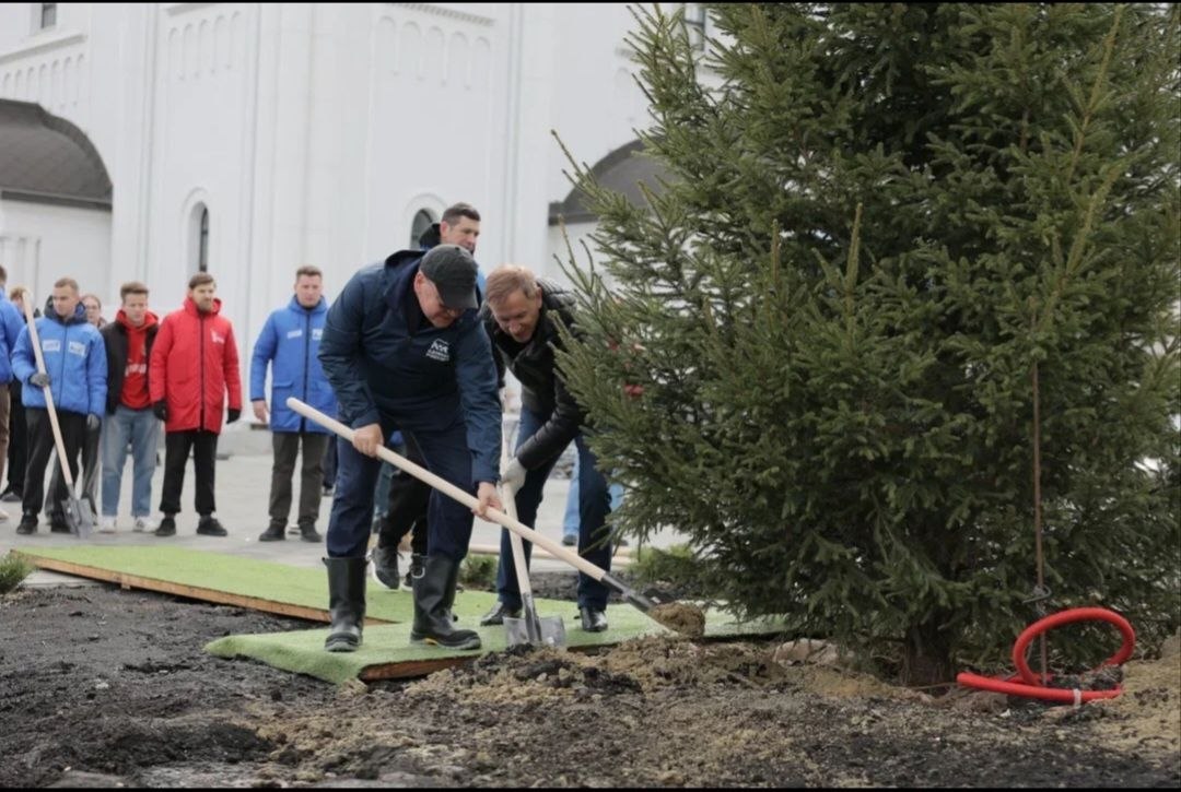 К посадке кустарников и деревьев на территории храма Преподобного Вениамина Печерского присоединились жители микрорайона, семьи воспитанников Духовно-просветительского центра, волонтеры.