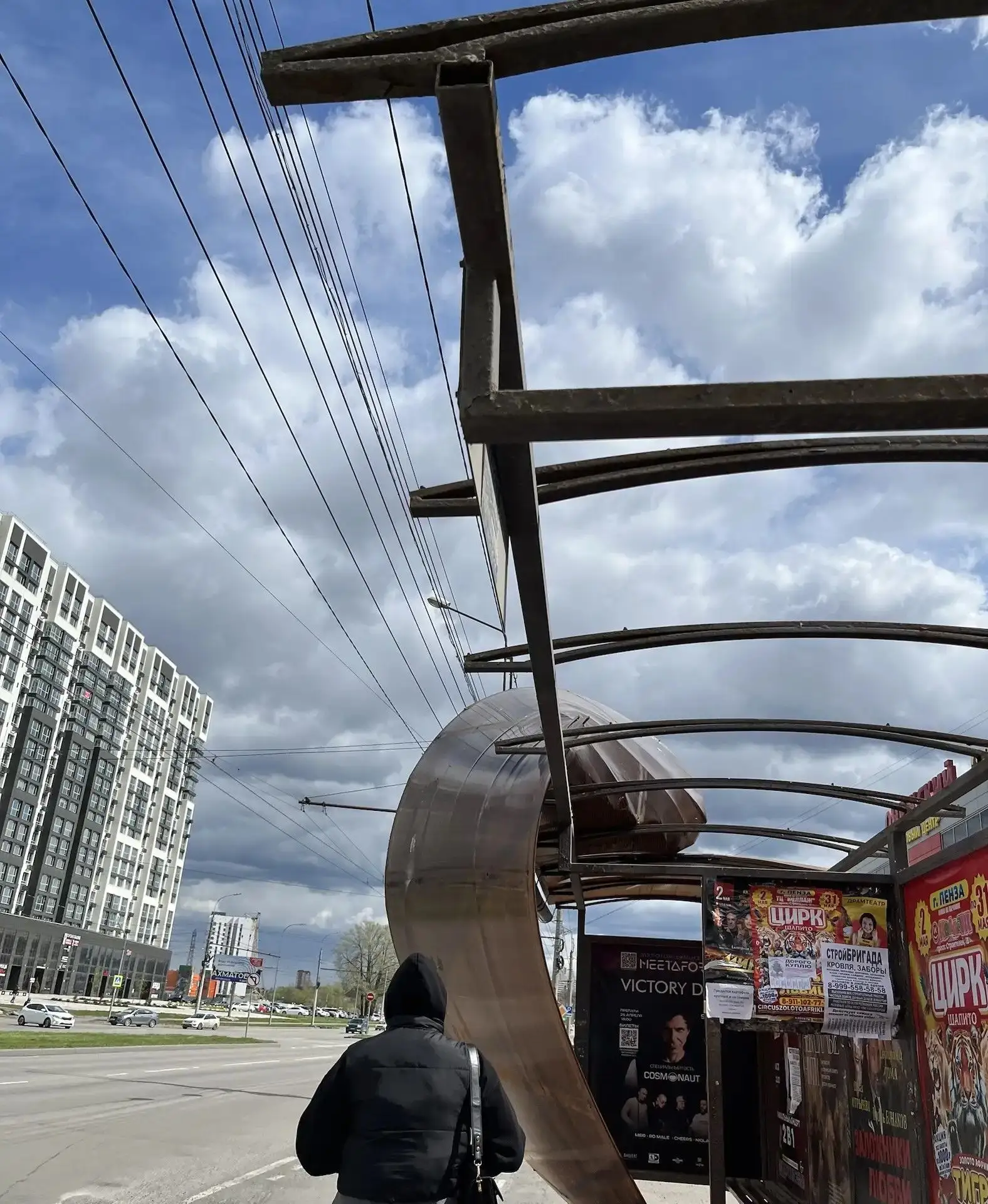 Крыша остановочного павильона у ТЦ «Онежский» после вчерашнего нежного апрельского ветерка. Фото нашего читателя.