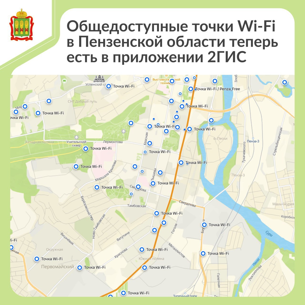 Теперь в Пензе общедоступные Wi-Fi-точки можно найти не только на «Яндекс.Картах», но и в приложении «2ГИС» для iOS и Android.