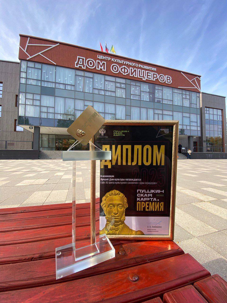 В Бетховенском зале Большого театра состоялось награждение победителей II премии Министерства культуры РФ за вклад в развитие программы «Пушкинская карта». Лучшим домом культуры в стране по работе в этом направлении признан наш Центр культурного развития «Дом офицеров», причем он удостоен этой премии второй год подряд.