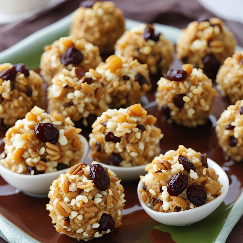 - Приготовление: Смешать творог с медом, добавить изюм и орехи, сформировать пирожные и обвалять в кокосовой стружке. Убрать в холодильник на пару часов для созревания.