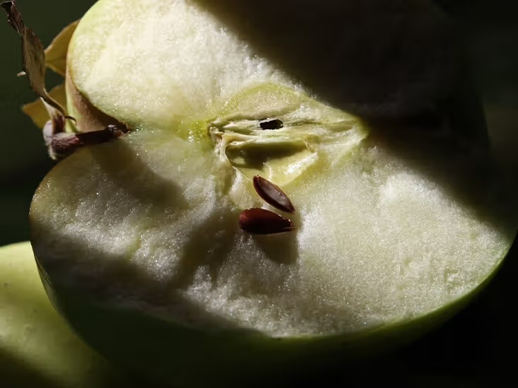 Яблочные косточки содержат ряд химических веществ, в том числе амигдалин, который при расщеплении может превращаться в синильную кислоту. Этот элемент вызвал много споров и страха. Исследования показывают, что в одной косточке содержится примерно 0.6% амигдалина.
