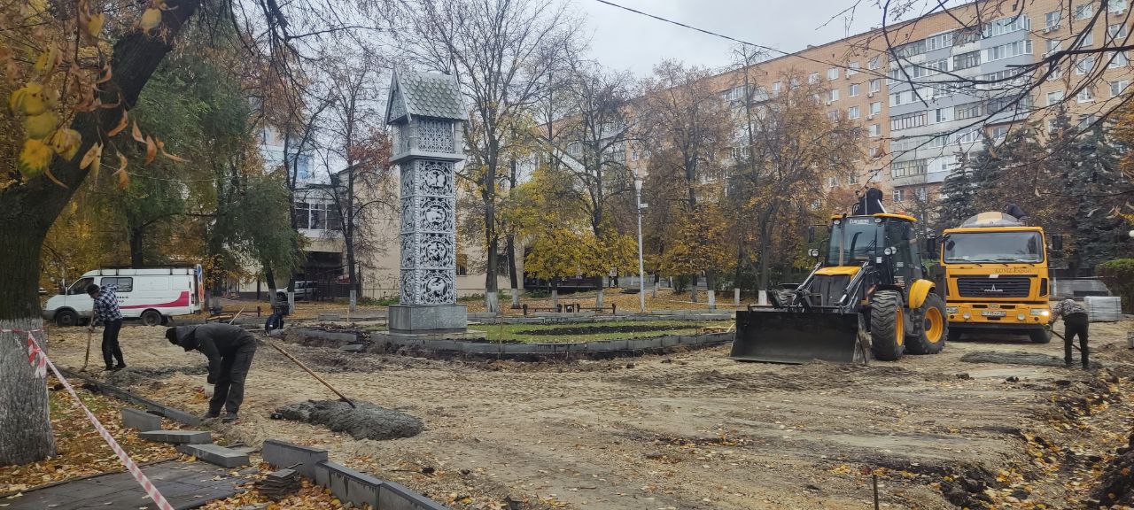 В сквере «Кукушка» демонтировали старую плитку. В понедельник, 13 октября, рабочие занимались подготовкой основания для нового покрытия.