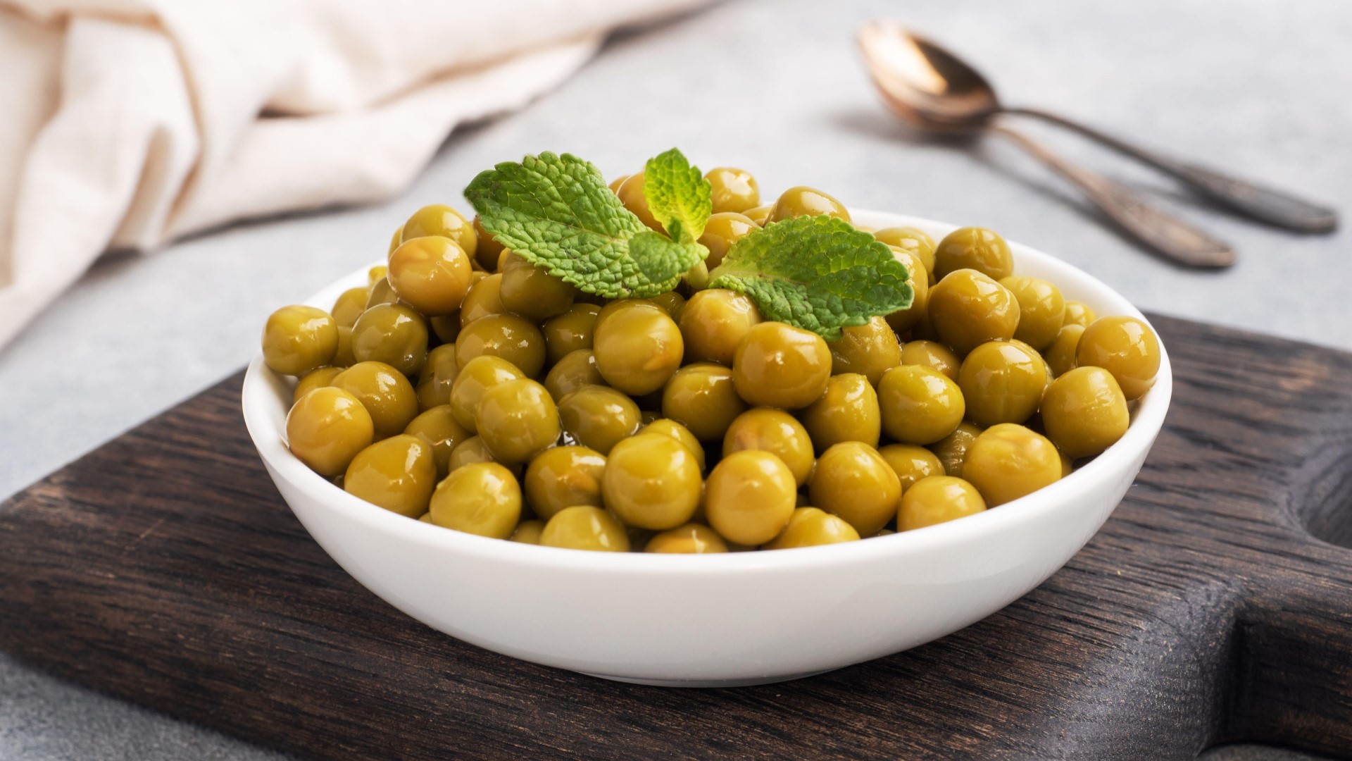 Соедините уксус, жидкость из-под горошка и горчицу, а затем тщательно взбейте миксером. Когда масса увеличится в объеме и посветлеет, начните тонкой струйкой вливать масло. При этом не переставайте взбивать смесь.
