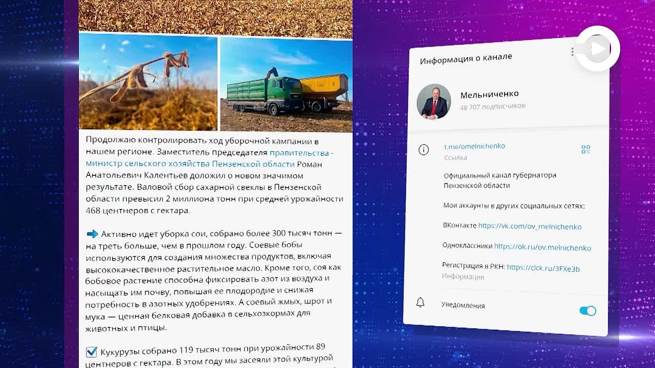 Губернатор Олег Мельниченко продолжает лично контролировать ход уборочных работ в регионе. По информации, распространенной в его социальных сетях, министр сельского хозяйства Пензенской области Роман Калентьев доложил о значимых результатах. Валовой сбор сахарной свеклы превысил 2 миллиона тонн, а урожайность составила 468 центнеров с гектара. Активно ведется уборка сои, намолот которой достиг 300 тысяч тонн, что на треть больше показателей прошлого года. Кроме того, собрано 119 тысяч тонн кукурузы при урожайности 89 центнеров с гектара.
