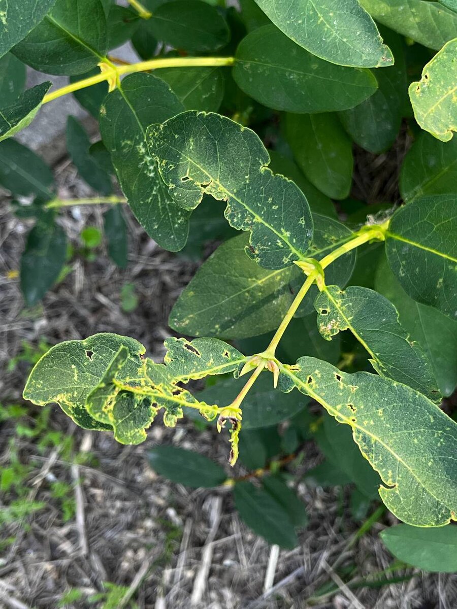 Среди садоводов часто возникают ситуации, когда верхушки молодого побега начинают деформироваться, а листья приобретают желто-дырчатый рисунок. Эти симптомы стали актуальными для одной из подписчиц, которая, высаживая десять сортов канадской жимолости, заметила характерные признаки у четырёх из них.