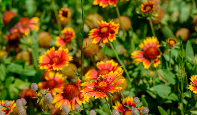 Соцветия сложно не заметить: они состоят из язычковых и трубчатых лепестков, окрашенных в желтые, алые, оранжевые и бордовые оттенки. Трубчатые лепестки могут варьироваться от темно-коричневого до пурпурного и светло-коричневого, что дает возможность создать разнообразие сортов. Цветение начинается в начале лета и продолжается до самых заморозков, что делает гайлардию желанным гостем в любом саду.