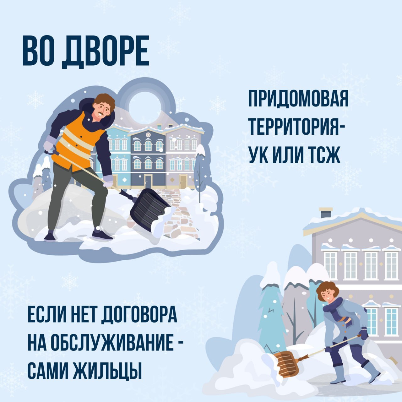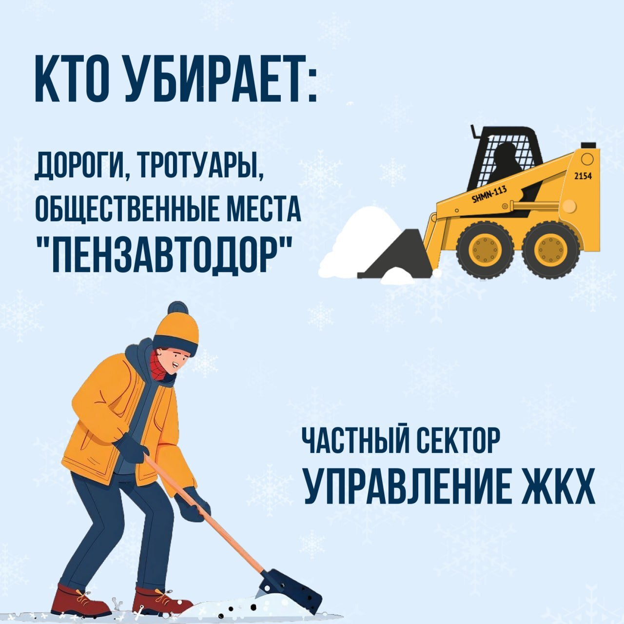 Зима уже скоро, и пора заранее подготовиться к снежным дням! В этой связи напоминаем: кто именно отвечает за уборку снега во дворах и на улицах.