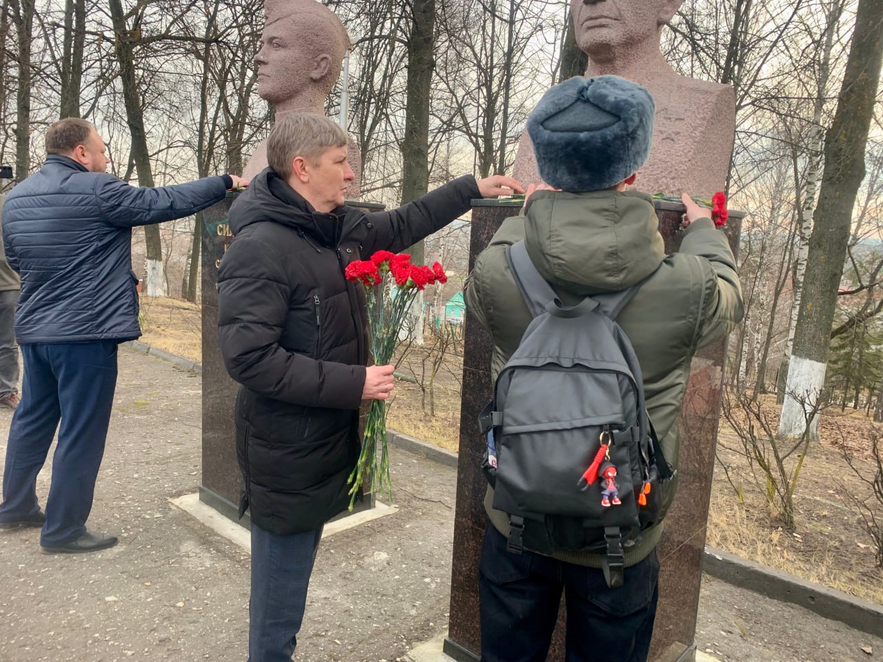 Участники мероприятия почтили память павших героев минутой молчания и возложили цветы к бюстам кузнечан — Героев Советского Союза и Вечному огню.