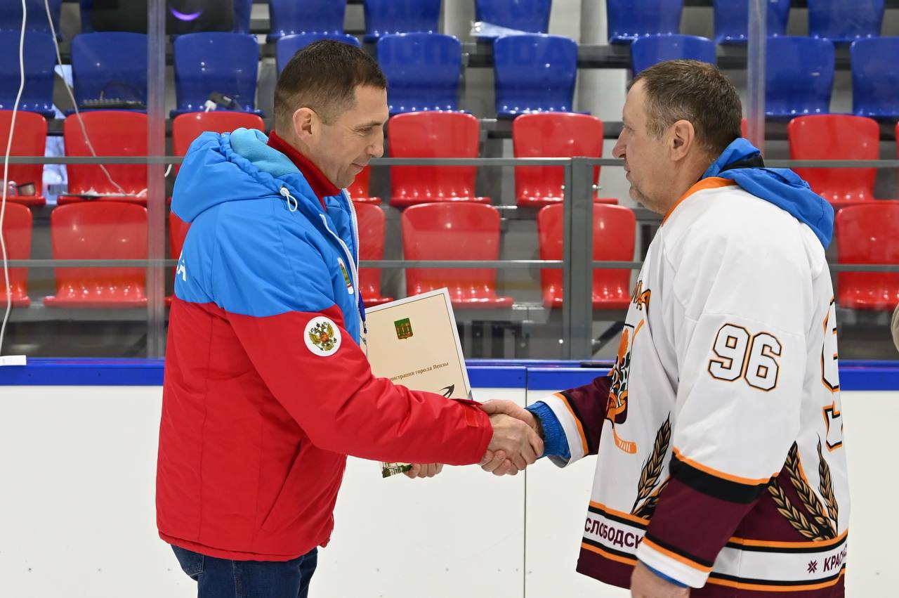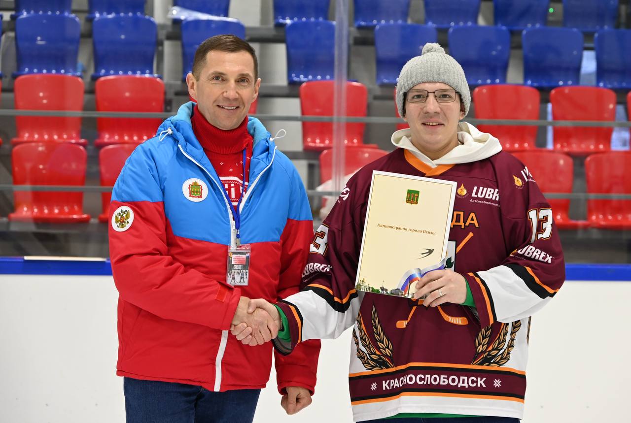 Поприветствовал участников Рождественского турнира по хоккею с шайбой «Кубок Дружбы». Любительские команды из Пензы и Мордовии сразились сегодня в ледовом дворце «Хрустальный».