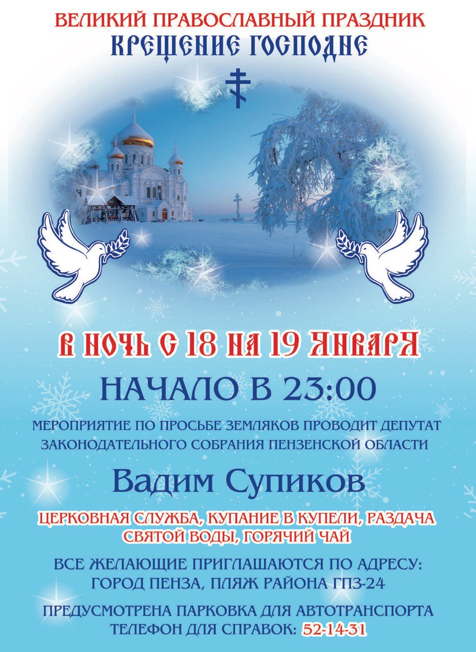 Председатель Заксобрания Пензенской области Вадим Супиков приглашает на празднование Крещения