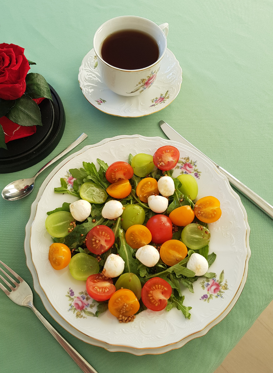 Представляем вам свежий рецепт салата, который согреет душу даже в самые холодные зимние дни. Нежная руккола, сладкие помидоры черри, освежающий мускатный виноград и мягкий сыр моцарелла — этот освежающий ансамбль удивит не только вкусом, но и яркими цветами.