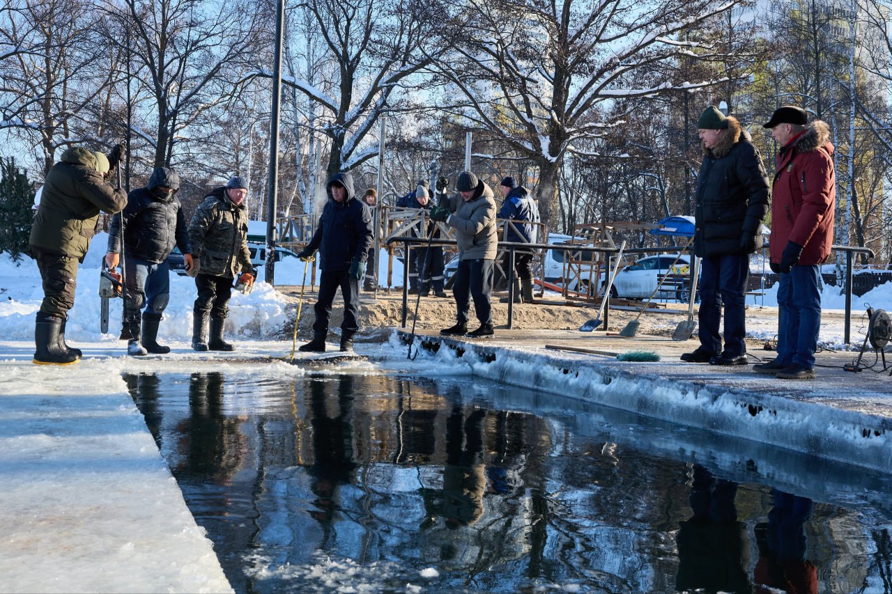 Учитывая массовый характер празднования, работы проводились в строгом соответствии с требованиями обеспечения безопасности людей. Купель подготовлена. Дежурство в Крещенскую ночь будут осуществлять сотрудники полиции, спасатели, медики.