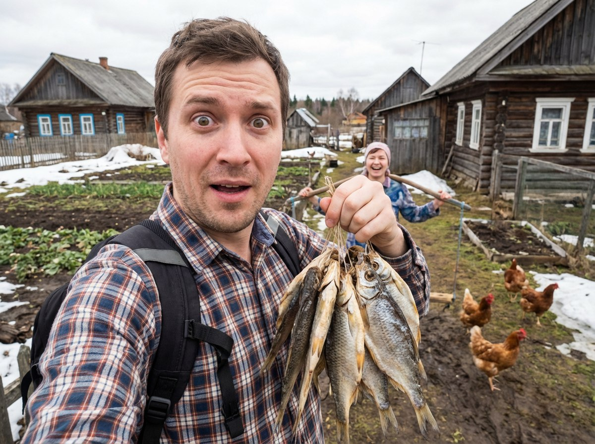 Парень из США, вступивший в брак с девушкой из России, впервые посетил типичную российскую деревню. Это была не туристическая ловушка с искусственно созданной атмосферой крестьянства, а реальная жизнь с огородами и уличными петухами. Такой опыт позволил ему увидеть привычные вещи с необычной перспективы.