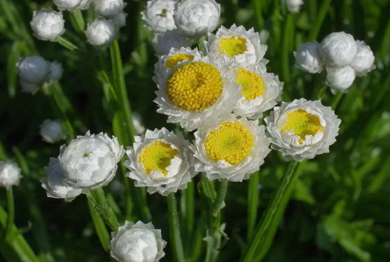 - Аммобиум — скромный, но запоминающийся сухоцвет, который прекрасно придаст эстетику вашему саду. Эта красота предпочитает легкие почвы и минимальное количество воды, подходит для большинства регионов.