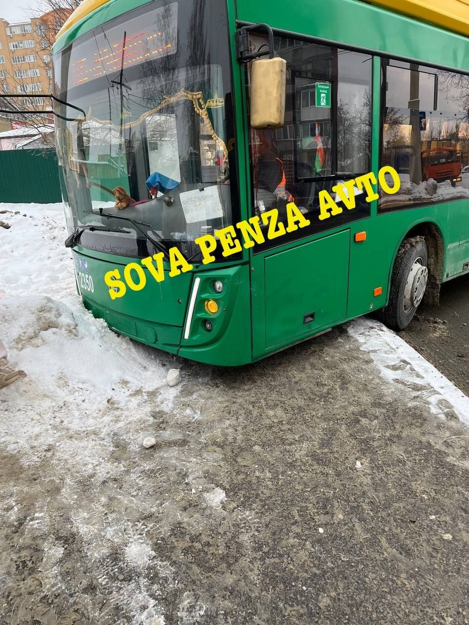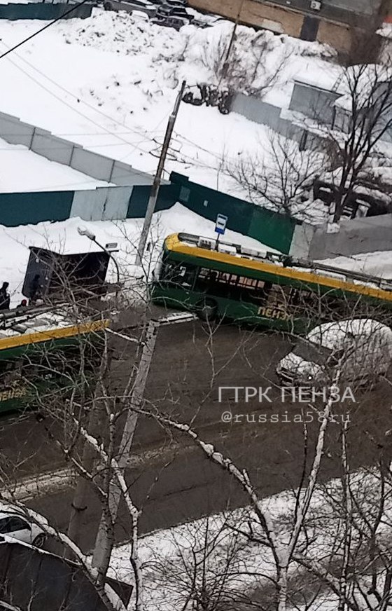 На улице Калинина троллейбус вынесло на тротуар. Как сообщают очевидцы, произошло это из-за скользкой дороги.