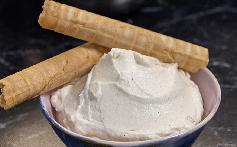Постепенно, по мере перемешивания, вводят сливочный сыр до полной гладкости, без комочков. В конце добавляют ваниль: она подчеркивает нежность крема и облегчает его аромат.